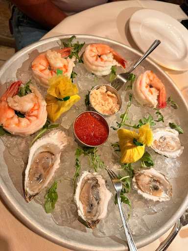 We started with a delicious round of appetizers: 🦐 Shrimp cocktail – perfectly chilled and fresh, with a zesty cocktail sauce 🦪 Oysters on the half shell – briny, smooth, and incredibly fresh 🧀 Burrata with cured ham – creamy and rich, perfectly complemented by the savory ham