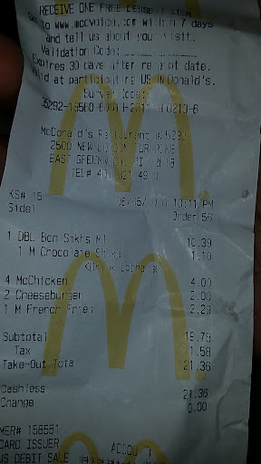 Read moreListen up mcdonalds ..... I frequent your location on newlondon turnpike, Coventry Rhode island very often but after my delivery order Tonite I am very much considering not to go to this location anymore and further more I'll contact the regional manager of that location . I ordered doordash at 11:15 pm or so .still open still accepting orders . The problem is the fries were way over cooked to the point where I couldn't chew them because I thought I was gonna break a few teeth .my teeth aren't the best .we had gotten 3 fries 2 large and a happy meal size .my kids fries were even hard . I had ordered for when I got home from work I would enjoy a nice unhealthy meal . Still the point is that they cooked the fries, then by the looks of them fries ,had them sit under the heat lamp for about 3 hours . I don't know last time I worked at McDonald's was in 2018 maybe that became something that your allowed to do now .last time I checked there is a time limit on how long fries can sit in the basket or under the light for . So it being 11:15 I'm sure they probably put down a basket of fries over cooked them then still sent them to the customer to finish the order . For the employees make sure to pull the fries when they beep and go off and dispose of them within the policy time frame For the leaders and managers ....get off your butt and check what your employees are doing instead of out in your car , or on your 50th smoke break of the day , or even in the back on your phone . McDonald's is a family restaurant and our family would like...