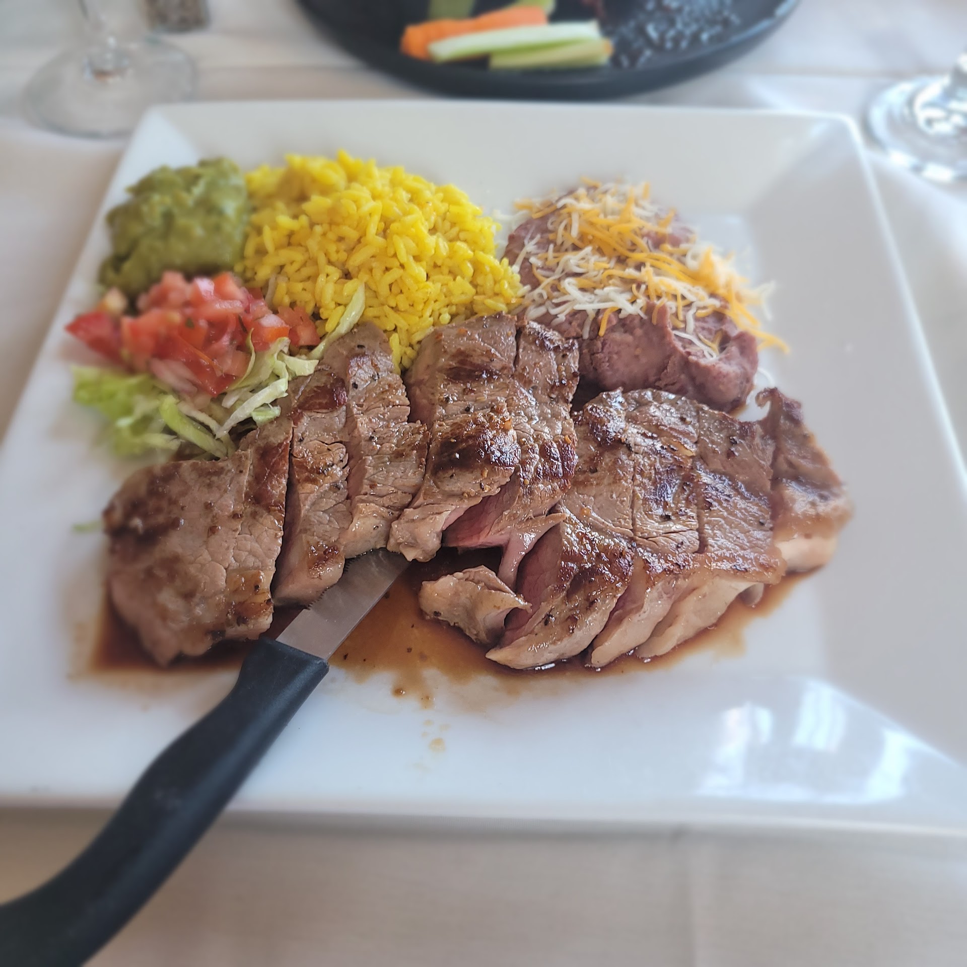 Food comes. My daughter loved her salmon - sauce was so flavorful. GP said the lasagna was really good. I had to taste it and it was definitely like I made it myself. Now to the Osso Buco. A huge piece of lamb covered in a gravy that words do it no justice, a generous portion of mashed potatoes that needed nothing added, and some mixed veggies (carrots, broccoli and asparagus). Being the first time for me that Osso Buco was amazing. The meat was tender and seasoned. The gravy was not overpowering the meat and complimented it nicely. Even sliding the mashed potatoes through the gravy made them even better even though they were great alone.