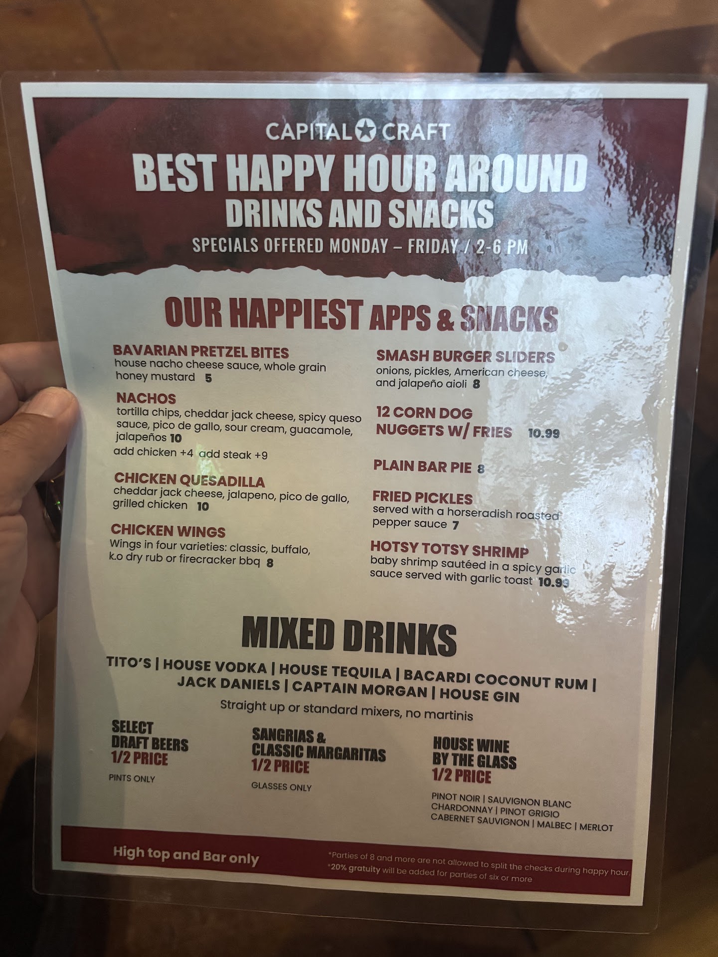 Ā Ā Ā Read moreWe were very excited to visit Capital Craft after first seeing construction transitioning the location from the previous Macaroni Grill.