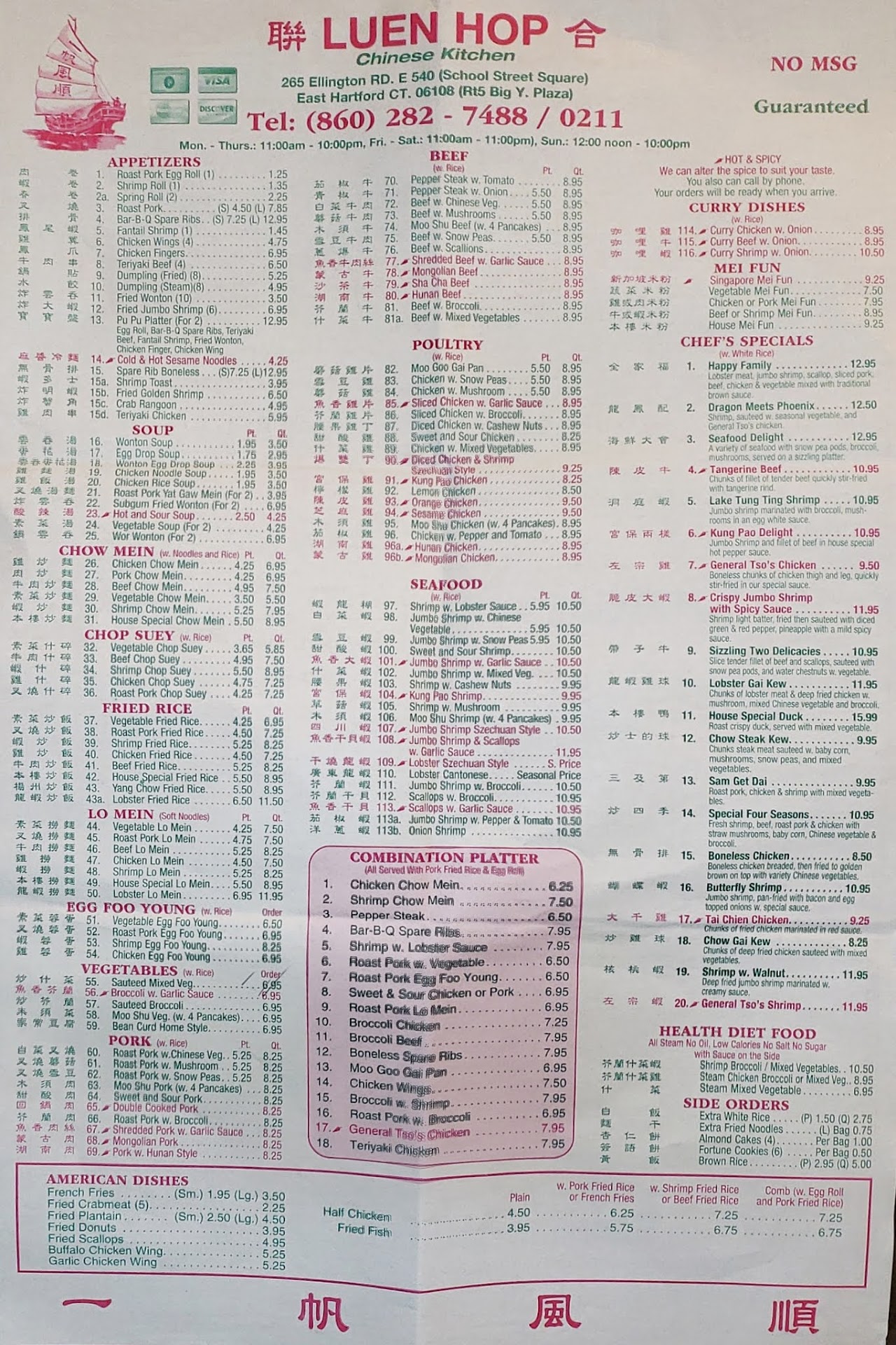 Read moreI was introduced to Luen Hop by my husband, 15 years ago. Ever since, no one can compare! We are huge fans of their bones spare ribs and they do NOT go light on their portions! I used to order the combo meal but now I order the large boneless spare ribs and a quart of rice so my daughter and I can share - and we each get TWO meals out of it!