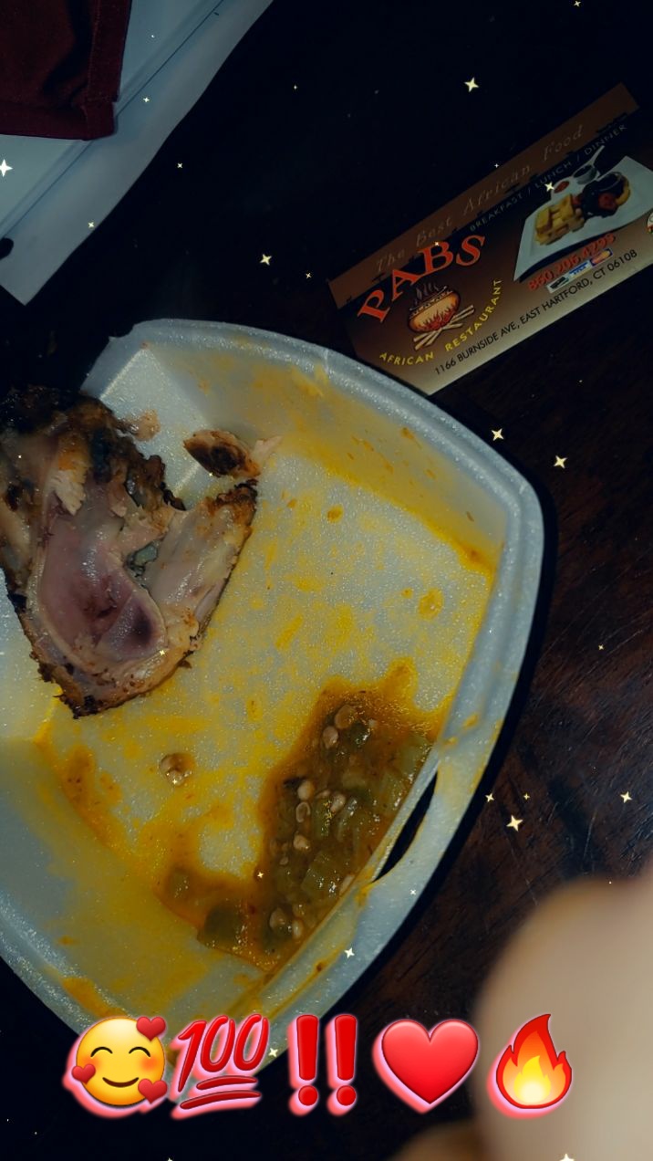 On a whim, a friend & I decided to do take out from Pabs. I was warned the food takes long but it's good. I didn't mind as long as the food was hot & not sitting around waiting for it to be scooped out of a hot plate. Upon arriving, it didn't look like much from the outside & when going in, that remained. A few booths, & a couple of tables (chairs up). There wasn't an official menu, just a small white board with some of the choices rubbed off due to handling. I made my picks, goat soup, fried rice with chicken. My companion selected jollof with chicken. While they prepared the food, that took around 20mins, we sat at one of the large booths. I was excited to try a new cuisine so I dug right in, forgetting to take pictures. The portions are substantial! My fried light yellow rice was moist, flavorful & was seasoned well with herbs. The chicken was cooked perfectly, not dry at all. It had a faint spice to it, just right. They gave me a hearty leg & two small breasts, & a small side of salad. I would have liked the salad to be separate so it didn't get warm in the foam container, but that didn't stop me from eating it. The goat soup was absolutely amazing. I tasted the broth first & couldn't stop! I could drink it all day. It had a little kick to it as well, nothing over bearing. The goat was so tender & they weren't stingy with the meat. Using utensils to get the meat off the bone is pointless. You have to use those tools God gave you (hands) & just get in there. This soup gave my body comfort, warmth & the itis. The amount in the plastic bowl is so much, I couldn't finish it in one sitting. I went back for more later in the night. I tasted my friend's jollof & that too was cooked to perfection. Although, he said it was ok. I think he's a little biased because his mother also cooks jollof. He ate plenty of it, so it received the seal of approval. This restaurant is going in the rotation, when I'm in the area. Even though there was a wait, it's worth it to have hot & delicious food. Nothing was luke warm or room temperature. I love when...
