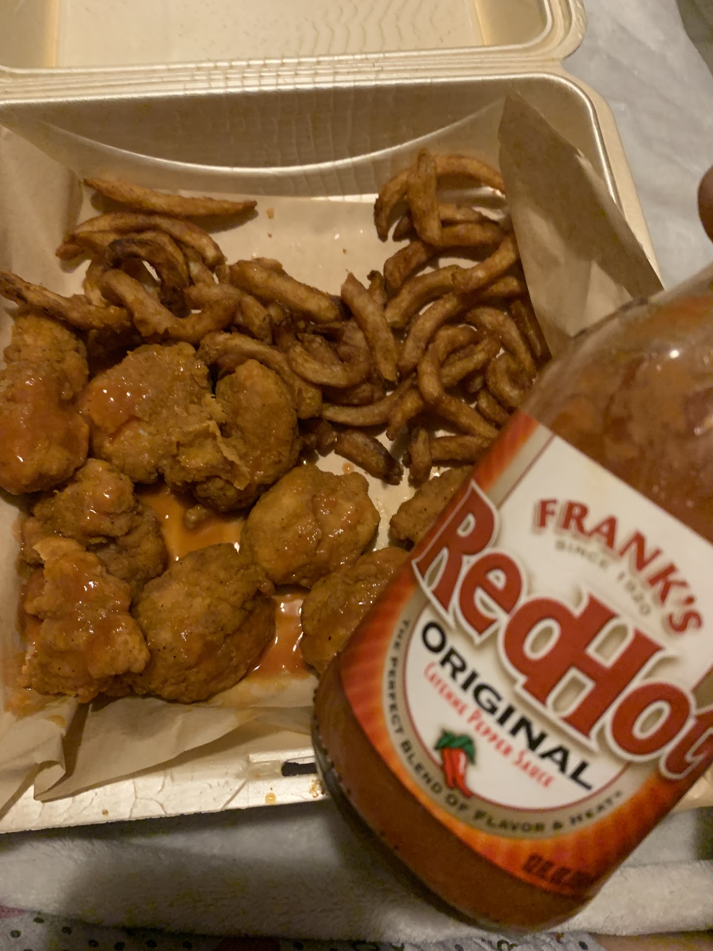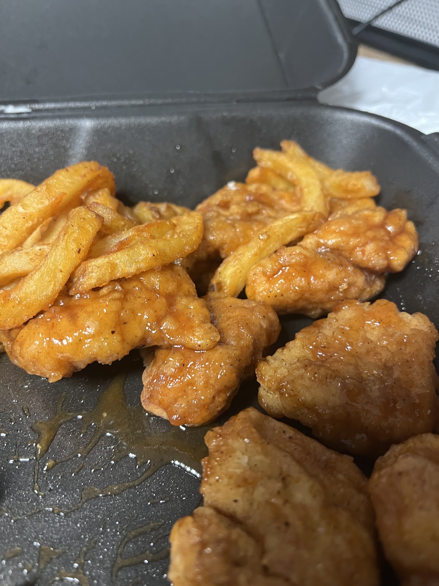 so I ordered on doordash and you are better off going in person because when I opened my meal you can tell just by looking its been sitting, very cold, very stale when bit into. I’m disappointed as well because I asked for buffalo wings they were dry I had to add my own hot sauce. I never got my ranch. My curly fries are very dark not yellow soft but crunchy and old with no cheese. I will not get from here again especially when I called and they wouldn’t even let me reach out to the manager knowing for sure how...