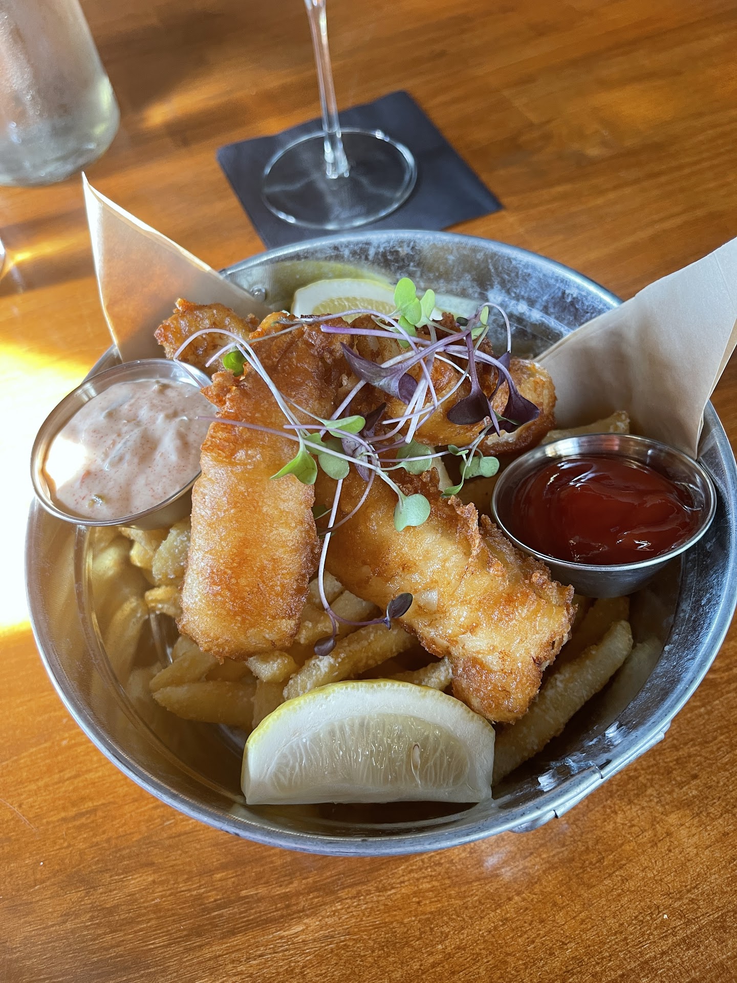Ā Ā Ā Read moreI was excited to dine here given the glowing reviews. Unfortunately, the only thing we enjoyed was the drinks. My wife got the rockfish, which she was enjoying, until she found a hair in the risotto. I ordered the Bison burger with a side Caesar salad. The salad was pretty good, but the burger I ordered medium well was closer to medium rare. They took the burger back to the kitchen, and I assume they threw it in the microwave as it was at least warmer but still wasn't cooked in the middle. Overall, it was very disappointing. At least the view of the lake on the...