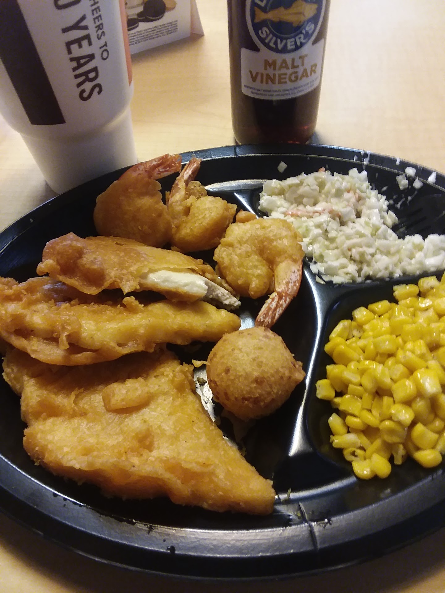 Their fish is still greasy after I haven't been there in years. It's a bit pricey since I've not eaten there in years. They need to remodel the store. Bathrooms are ok but old. I'm sorry but I probably won't be going back. The workers were polite. Tables were clean considering the last place I was all the tables were dirty. No excuse for the dining room tablels to be dirty, when you have a crowd and you have to have a person who's just there to keep the tables clean. I worked at two fast food restaurants thirty some years ago and there was a person to just keep the tables clean and garbage out. I guess they don't care about the place anymore....