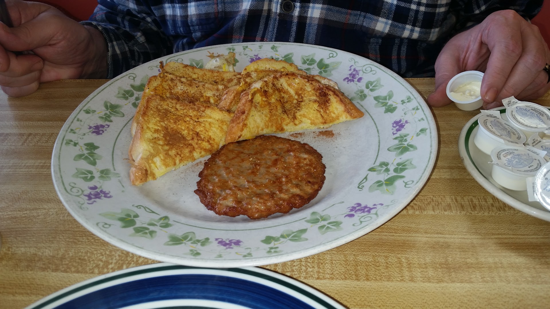 Read moreSmall place, wanted to try something new. Coffee was where the 1st issue was. It was burnt in the pot before for sure. A nice proper cleaning may be needed for the pot and the machine. The server was friendly, though a large group came in while they were making out food, which seems that they pushed ours out a little too soon. The potatoes were still white and luke warm. The syrup was awful, and I honestly suggest trying a new brand that doesn't taste like pine sol. The eggs were cooked well and the toast, that's why I even gave a 1 for food.