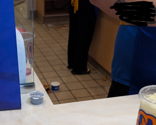 A, placed an order for a frozen drink and mini pretzel dogs for my son, a strawberry lemonade and mini pretzels for my parents. The clerk pushed this disgusting looking part empty cup of mini pretzels (that look as if she was snacking out of them) my way and was only too quick to grab money. I said those don’t look good it looks like some are missing, do you have any others? I got a NO and a TUDE. Then I asked if there are more being made and although you could clearly see an employee working on it she said no and if there were they’d be twenty minutes. A solid WASTE. Seeing that they had no care, no customer service I figure that they probably aren’t following any food safety protocols either. Don’t need food poisoning, don’t frequent this place. ...