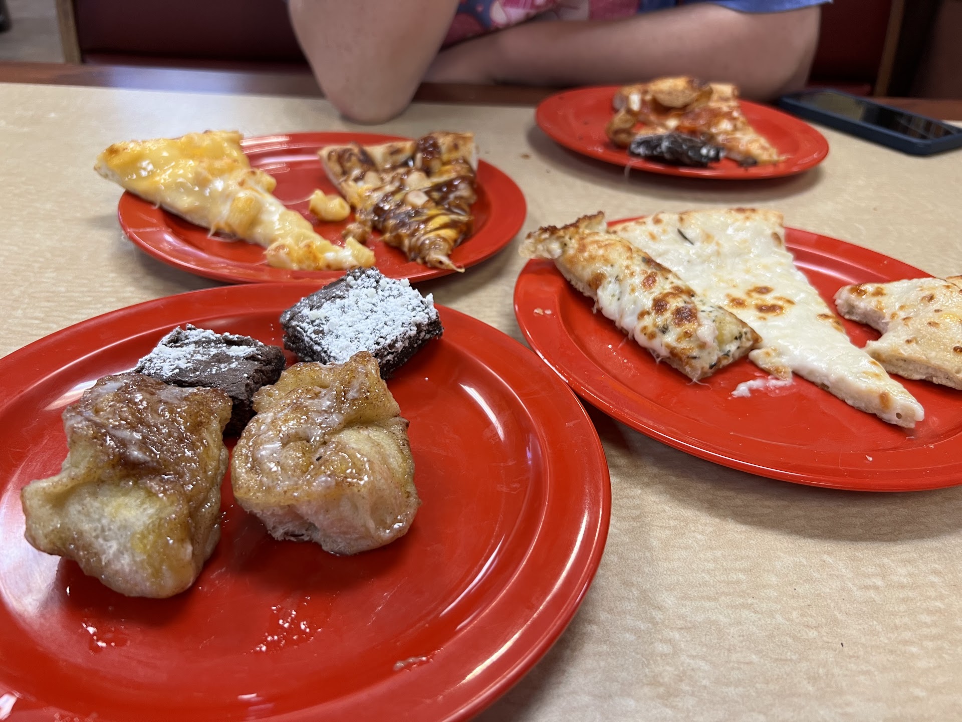 Read moreThis restaurant is an all you can eat Buffet consisting of salad, soup, breadsticks, pasta, pizza and dessert. It is not very fancy, but it is very economical if you have a lot of small children. It is hard these days to go out traveling with your children and find food for them to eat that they will enjoy. While pizza isn’t the most healthiest food, everything is fine in moderation after all. 😊. We have eaten here before, and came back specifically because we have two picky eater children. Everyone was able to get a little some thing of what they wanted which makes it a much more pleasant eating experience! They had lots of salad dressing choices for the salad, and some good toppings including what looks to be homemade croutons. The soup was a little on the plain side, but I’m sure once again that is so a child might not find it so spicy. I just use some red pepper flakes to give mine a little zip. The pizza I had was nice and fresh, and the chef bringing out the pizza even asked if I was looking for something special. He stated he would make something if I didn’t see it out. They rotated what they had very quickly. There wasn’t anything sitting out for a long time. The desserts were either a little cinnamon buns or dessert pizza which was either apple topped or cheese topped as in like a cheese danish. Drinks or a separate price but you can go and refill your cup as many times as you’d like. This is a good place to go for big families who are on a budget and don’t want to break...