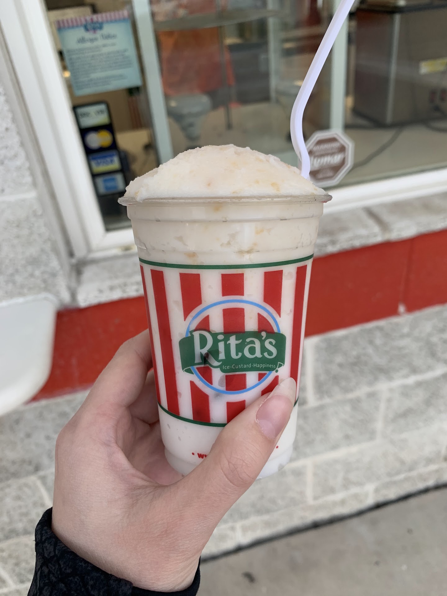 Read moreOrdered a peanut butter mudslide and it was anything but !!!! Tested like peanut butter ripple ice cream, hardly any peanut butter taste to it. Paid $6.36 for a what seemed like a small cup. They said, they only have 1 size !!!! Could of went across the street to weis and bought 2 half gallons of peanut butter ripple ice cream for the price I paid. So...