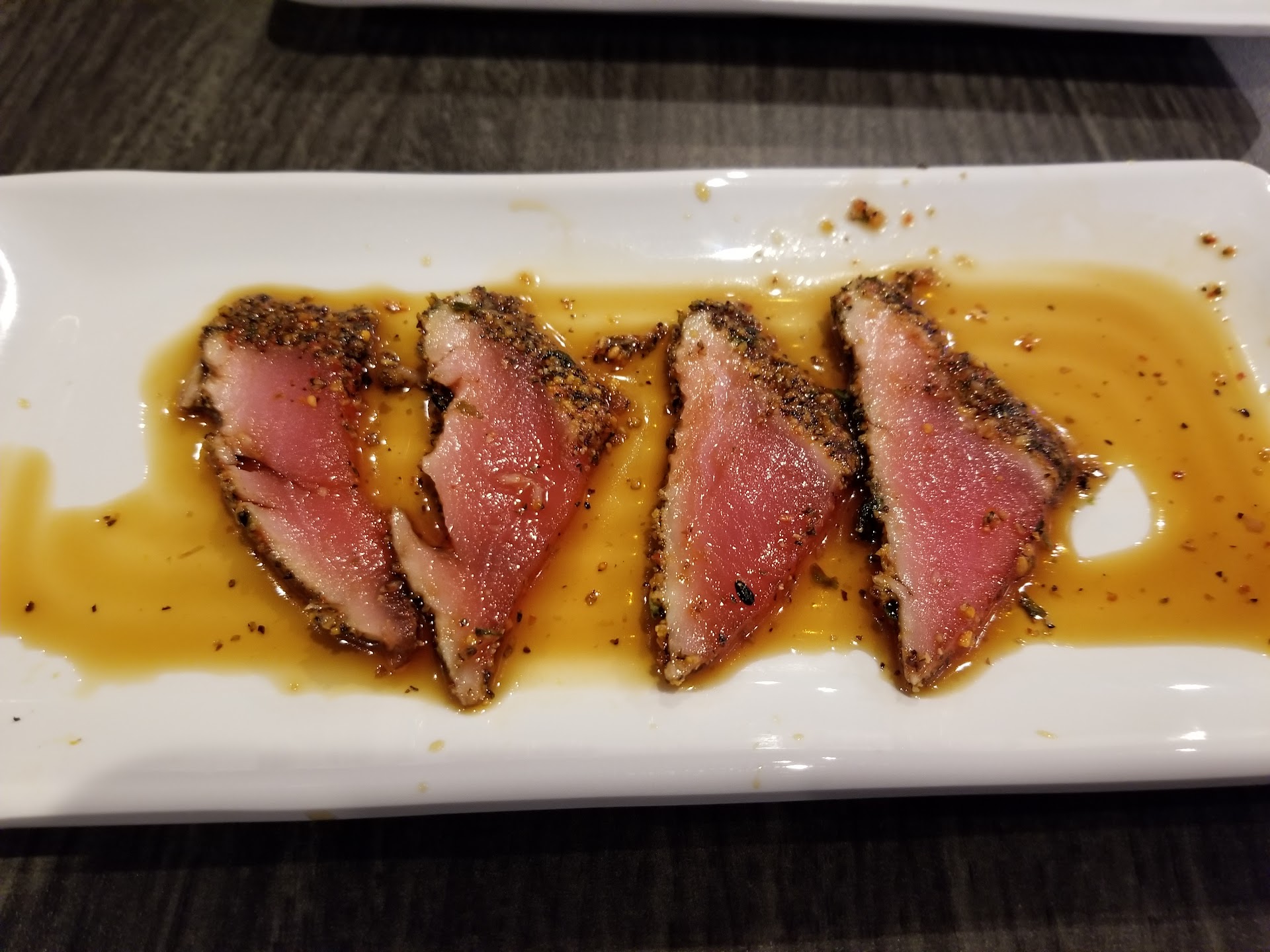 PROS: The HIBACHI!! Wow, I was not expecting a FULL plate of Hibachi. Usually at these type of places you will get a small tiny almost sampler like plate. Not here! It was a full meal. The Steak was cooked beautifully and and Veggies were so tasty and perfect! The rice was nice :) - I ended up ordering this dish twice because it was just so good and the second time I ordered the dish it was even BETTER somehow! -The BLACK PEPPER TUNA was AMAZING!!!!!!!! Thin and juicy with a nice ponzu sauce drizzle. -TOFU SKIN SUSHI - I haven't seen it much in this town but I was so glad to see it on the menu here. It was perfect! Nicely sweet and finely crafted. I ordered it a few times as you can see. (I posted a pic every item we ordered at the table during our time there) -BEEF NOODLE - Very good. Wish the beef was more prominent with larger pieces but the flavor was good -WHITE TUNA SUSHI - Always one of my favs. The taste was good but I thought it was too thin of a piece but since it is all you can eat I understand. -AVACADO SALAD - I was surprised to see this one the menu but I am glad I tried it. Very nice! Wish it had sesame seeds but I can't complain. -TAMAGO SUSHI - Happy to see this on the menu. It was pretty good. Just a little thin but it did have a nice taste. -VEGETABLE TEMPURA - It was a little batter heavy but it did have a decent taste. -CRAZY MONKEY ROLL - It was definitely the best maki roll we had. Very unique combination of flavors including fried banana.