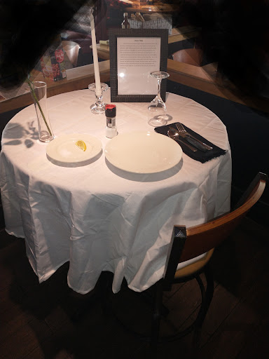 The entrees followed shortly after. The steak was very small and looked dried out, but once cut into, all the bloody juices drained out like a slowly deflating water balloon. The green beans on both plates were limp and mushy. The shrimp was another story entirely. My husband made it two bites into his meal before feeling sick. The breading on the shrimp was falling off when touched and the second shrimp he said felt mushy and tasted metallic. Here we are 4 hours later and he is still feeling ill.