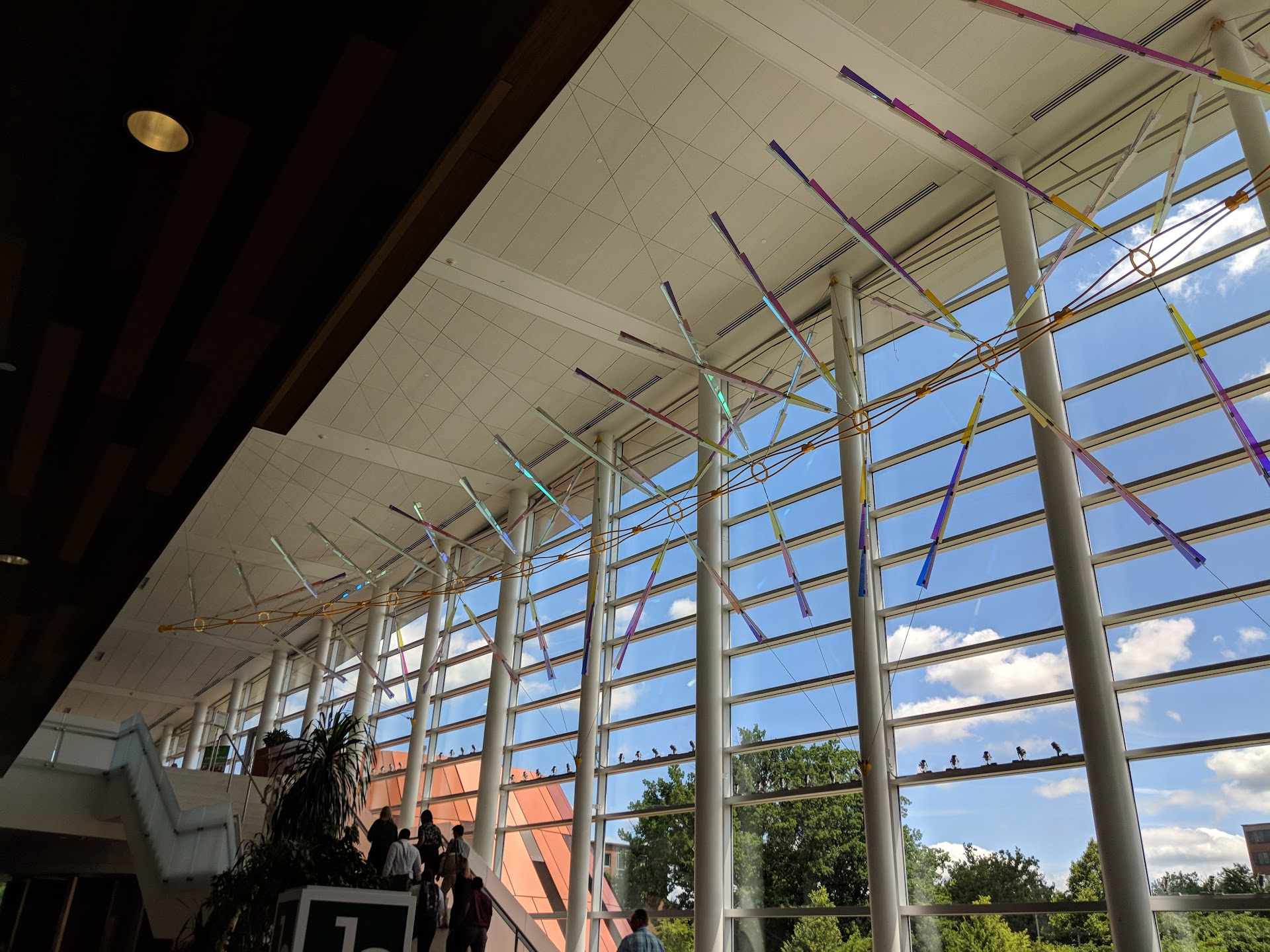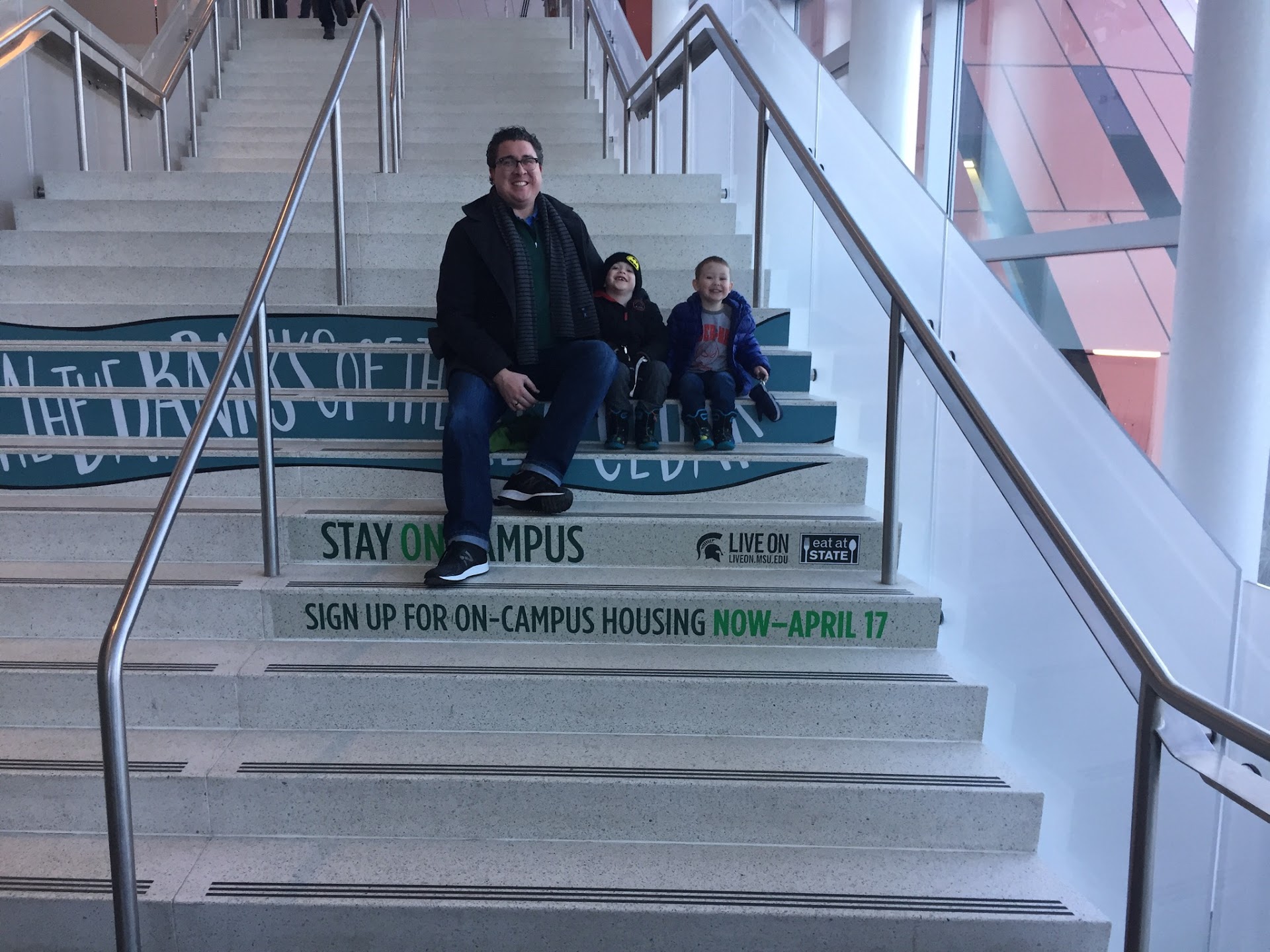 This dining hall is part of the Michigan State University system. It is across the street from the Kellogg Center. For a little over $10, non-students can eat here. It's well worth it. There are multiple (9+) food stations serving food from around the country and the world. Most stations offer vegetarian, vegan, and gluten free options. There is also a dedicated station offering only vegetarian and vegan choices. I tried items from multiple stations and liked almost everything. The southwestern station had vegetarian chorizo, which I had in a sort of taco salad. The staff serves you the hot items and some additions (guacamole, sour cream, cheese, lettuce, cilantro, etc.), but you can add other items yourself (tortilla chips, salsa, hot sauce, etc.). This was the first station I tried and the one I enjoyed the most. I also tried pasta with sun-dried tomato pesto, which was okay. I didn't try the pizza station, but I should have because the pizzas looked great. I also tried the burger/fries/chicken station, where I ordered a grilled cheese (made to order, not pre-made) and fries, which I added malt vinegar to. Delicious! I also tried some items from the vegetarian station, including Brazilian black bean stew and spicy hummus with pita. The hummus and pita weren't great, but the stew was good. Next time I go, I will start with the vegetarian station because there were a lot of items I'd like to try, but I was full. I did have a scoop of raspberry sorbet, which I found to be too sweet. Overall, the range of options, the quality, and the price make this all-you-can-eat experience one I will return to. My three dining...