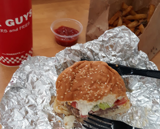 I've waited to update this review in the post Covid period. I've tried to voice my service and food quality issues through their company website but received either lip service or no response from management. Further, there's been little or no changes made. The last time I was there the coke machines were empty and Dr. Pepper or Ginger ale were the only options. I used the online ordering and got my order 15+ minutes after the expected time. My fries were cold and undercooked, sitting in cups under the heat lamp for at least ten minutes. Even the burgers were cold. When I addressed the same server he argued with me about the timing but I was there so long I started keeping track. I tried to talk to the manager but he was so flustered that he couldn't address the issue. In his defense he'd been dealing with an angry employee but even that was publicly and poorly handled. This has been par for the course during my past few visits. Fries are one of the place's strengths and they've been consistently mediocre lately. That and seven dollar hot dogs. This place isn't cheap and I expect better!! Don't get me started on cleanliness. As Five Guys go I'd avoid this location and look elsewhere.