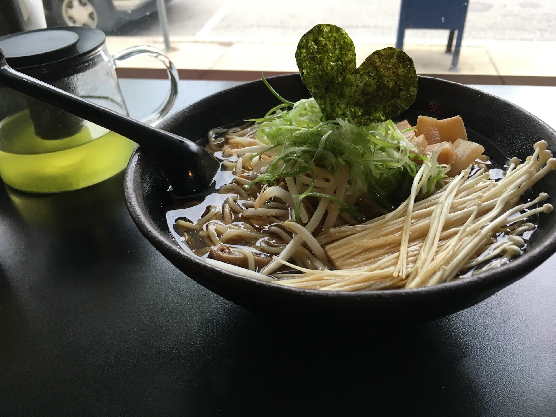 My partner and I tried this place out for dinner, and we were not disappointed! Per the recommendation of the server, I tried the veggie shoyu ramen. I couldn't believe how flavorful it was-- when it comes to Japanese noodles (at least in the States), vegetarians often get ripped off. But these noodles were amazing: the broth was complex, there was a great combination of bok choy, nori, bean sprouts, and scallion, and several different types of mushrooms, which gave it a 'meaty' body. I tasted my partner's noodles, too, the Sapporo miso. I was surprised to find that I actually preferred the taste of the veggie shoyu broth, despite there not being any meat in it. But my partner definitely enjoyed his, 'cause, ya know, meat. If you're a carnivore, you can't go wrong with chashu.
