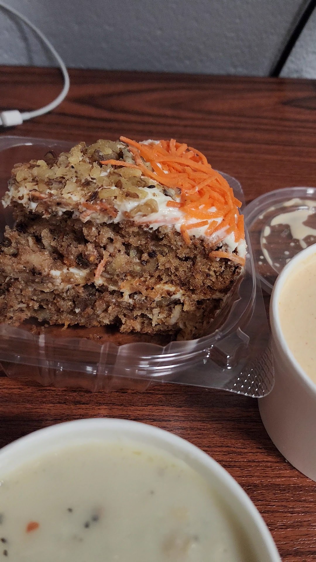For entrees our table had a kids fish and chips (the only seafood thing on the kids menu which was weird for a seafood restaurant) fried haddock dinner, wild salmon dinner, lobster roll, and calm strips. We all got creamy chowder as well. The soup was watery, almost like they just added a splash of cream to the clear soup. The celery flavor was a little overwhelming but overall not a terrible soup. The haddock was cooked perfectly and once again had great flavor. The wild salmon left a lot of be desired for the price. For $24 I was expecting a piece of fish that had that great salmon flavor. Unfortunately, that was not what I got. The fries were good however! The lobster roll was big and apperently was great for the price ($20). The calm strips were perfectly fried and the portion size was huge. They were not rubbery at all! Overall the food is a solid 3. Things were hit and miss but the things that were a hit were really good! The quality is definitely there for most of the menu items that we tried.