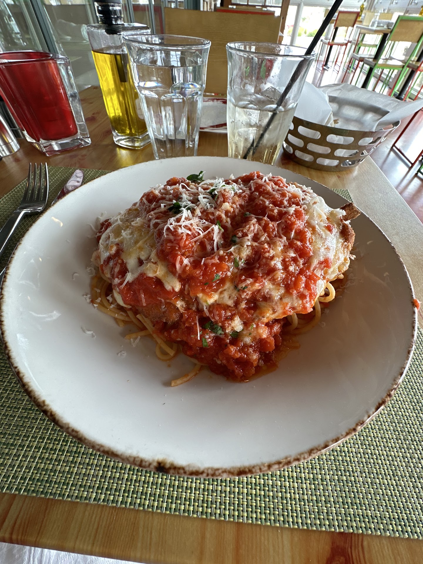 Came here the other night for the first time, and im sad to say I don't think I'll ever come back. Waiter was very pushy and just down right awkward and over stepping of personal space. He attempted to talk me out of ordering food I wanted insisting I couldn't eat it all. Guess what? Your job is to take my order not refuse it. He also was just getting to close into my personal space, covid season or not, hand on my shoulder, talking to us for way to long, and interrupting our conversations too. I also noticed him doing the same to other customers there at the bar too. I'm not a regular, it was my first time, I don't know you, leave me alone please. I also noticed there seemed to be too much staff on hand, I constantly noticed employees standing about doing nothing more than staring at me or other customers which just made me feel more awkward. And I tired to get a long Island ice tea, I don't know if the person working the bar acruslly knows how to bartend but it was not a long Island, no sweet and sour mix and possibly no coke as well. It was basically just a glass full of alcohol. The food wasn't bad but not good enough to make me put up with the rest. My spaghetti seemed slightly undercooked, not quite al dente yet. It's pasta, like, cmon, I was able to make that when I was 7. The Parma and baratta is excellent though and I'd recemend ordering it as long as your waiter isn't the bald guy with the big gut (sorry I don't know your name but that will surely identify you) because otherwise he will insist you can't get it because it'll be too much food. Maybe he forgot that they have take out containers.... I also can say the wedge salad tasted like dirt all throughout, only reason I ate it was out of spite to baldy who claimed I couldn't eat it all. I've heard many good things about this place so I was very disappointed to get what I got but I guess that's what happens. If you want a good meal in town, there's plenty of other restaurants that will actually make what you order and let you order it too, like literally any...