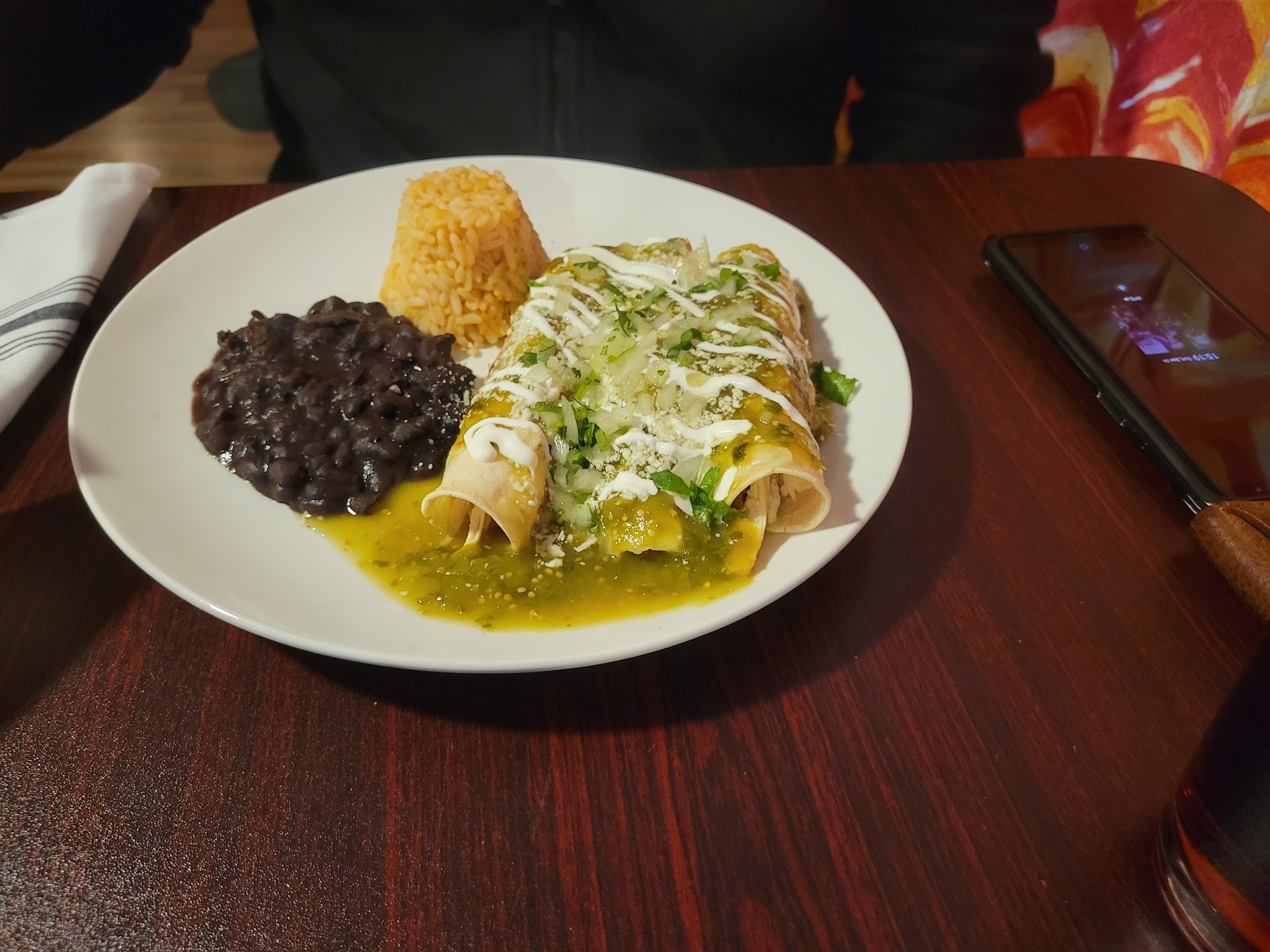 For our mains, we had the veggie enchilada casserole and the beef burrito. They were both outstanding; there is a high-end restaurant in the area that serves a similar casserole and this was far better.