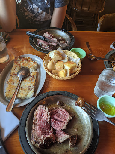 There is a limited menu, its done course style so you can choose betwen 3 cuts of steak or crab legs and they give you a set of sides. The layout is lovely and there are a lot of things to look at, there is very nice decor. There is a lot of history there. The food was good quality, but frankly it came to the table barely warm and was pretty much cold right away. I did not enjoy eating cold food and paying $200 for the pleasure of doing so. Also the meal came with sides and they ran out of one entirely and did not tell us or offer a substitute. The sides we did have I enjoyed, I do with we could add toppings to the potatoes though (to be fair I did not ask about that). The garlic bread was KILLER, I would have doubled that order had I known. The mushrooms were delicious as well.