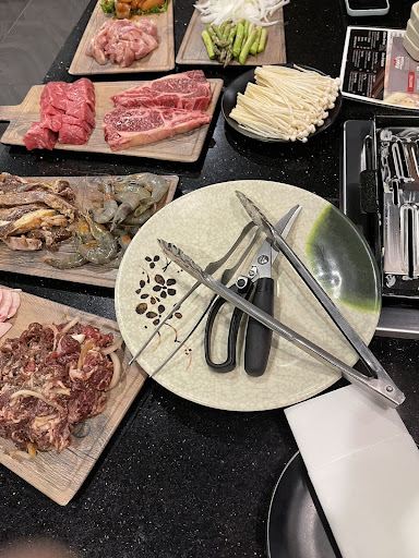 Food ⭐⭐ The food is not as good considering the price that you're paying for. You can definitely find better food quality elsewhere. We got majority beefs and the beefs are flavorless and hard to chew. The one I remember the most is the brisket. That brisket composed of 90% fat. We also got the pork belly. Even the pork belly is not as fat as the brisket. the food came in a large quantity, stacked up like a mountain. The brisket we ordered came in at least 15-20 slices in one order. We ordered the short ribs and one order is at least 10 there. The portion here is humongous. I believe they just want to get us full and leave.