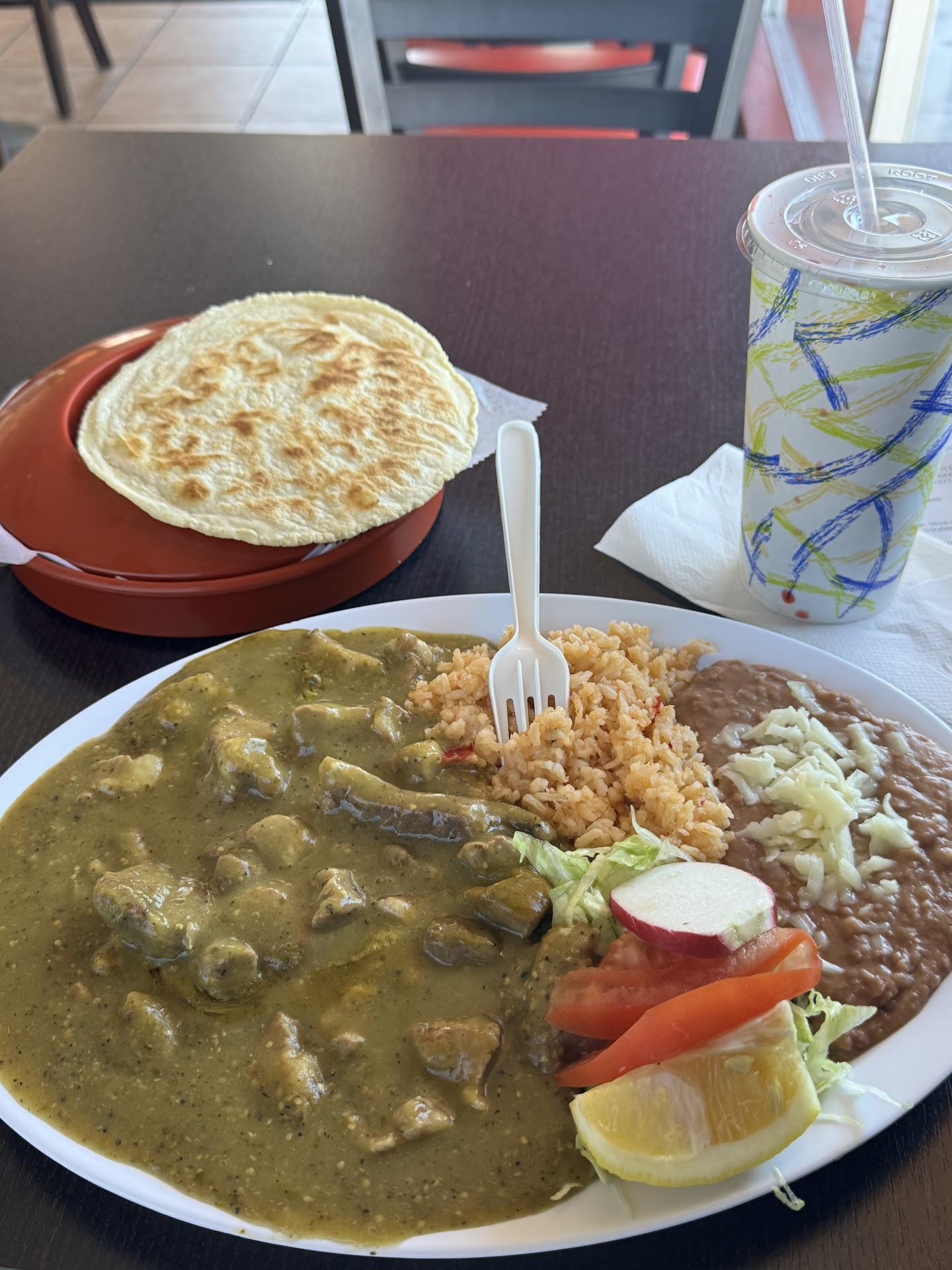 Read moreI ordered the Chile Verde. I can only tell you. It was huge servings. I couldn’t eat it all. The green sauce was smooth. The pork cooked to perfection in the green sauce. I wished I could’ve asked it to be a little more spicier. Still Soo good! Served with rice and the Beans! We’re Soo Good! Comes with 3 huge homemade tortillas! I ordered the fruity Hibiscus drink. I left with a food coma. lol That good! Others in the restaurant were giving the cooks a Someone had a seafood dish. A Thumbs up!