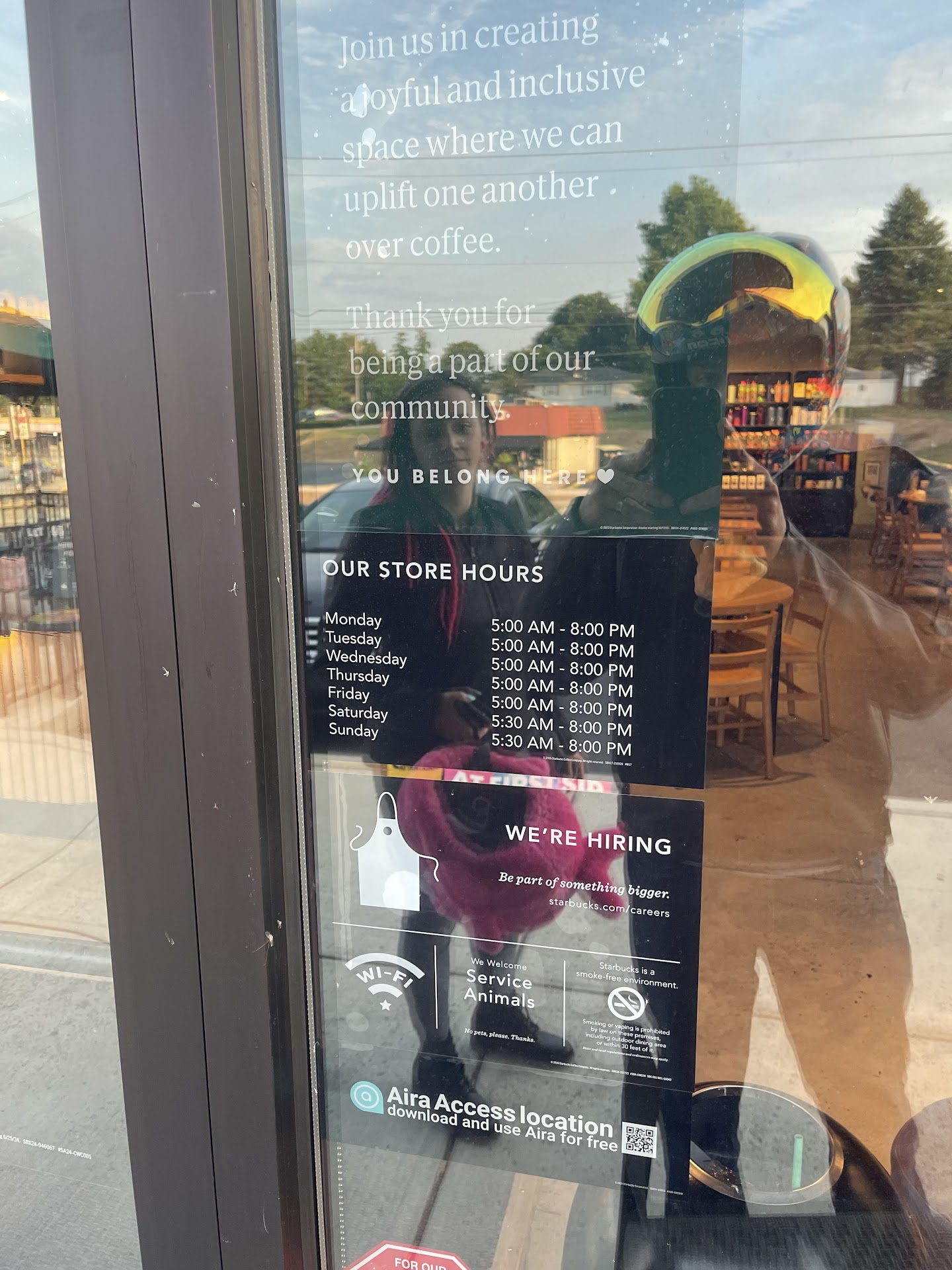 Ally said the drink was free due to the mistake from Saturday. I am incredibly impressed she even remembered my face out of the dozens she saw that day and that she remembered the drink error. That shows how much she and the staff at this location cares about their work and customers.