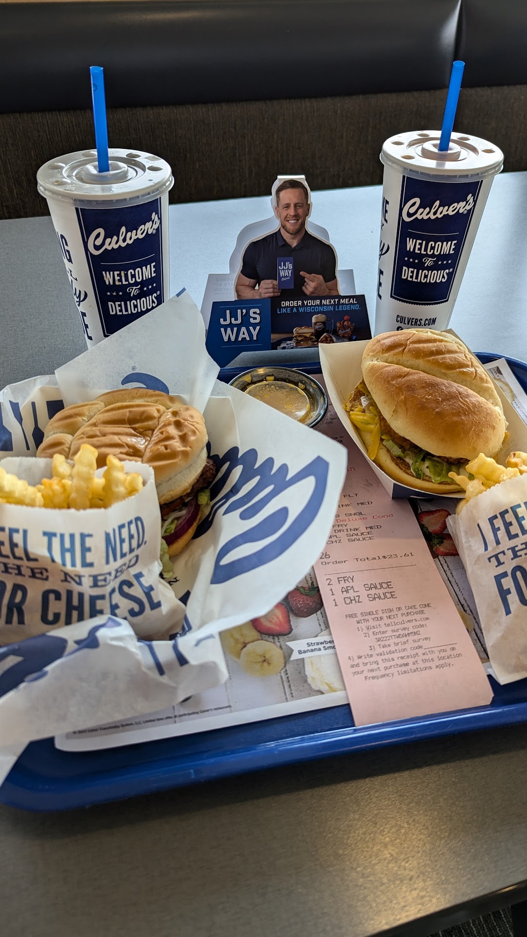 Read moreA man at the takeout counter took my order. He appeared to me as if he didn't really know what he was doing. Maybe he was a new worker? He took my order and told me that it would be ready in 15 minutes. He told me to go have a seat and he will let me know when my food is ready for me to take out and head home. I went back up to the counter to ask him if there was a number that I would need when they would call my name. He told me that I wouldn't need a number and that he would come get me when it was done. I was waiting way longer than 15 minutes for my food. So I decided to go up to the counter and ask where my food was after a lady asked me had I been helped yet? I told her that I was waiting on my order. So she went over to the takeout food I guess for the doordasher to pick up when they are picking up an order. The lady found my order just sitting up on the shelf and the man never came back and told me that my food was ready. So when I get home my fries are cold they are bland my burger was cold and I put it in my microwave when I got back home period this was my first experience with getting food from Culver's. I don't think that I...