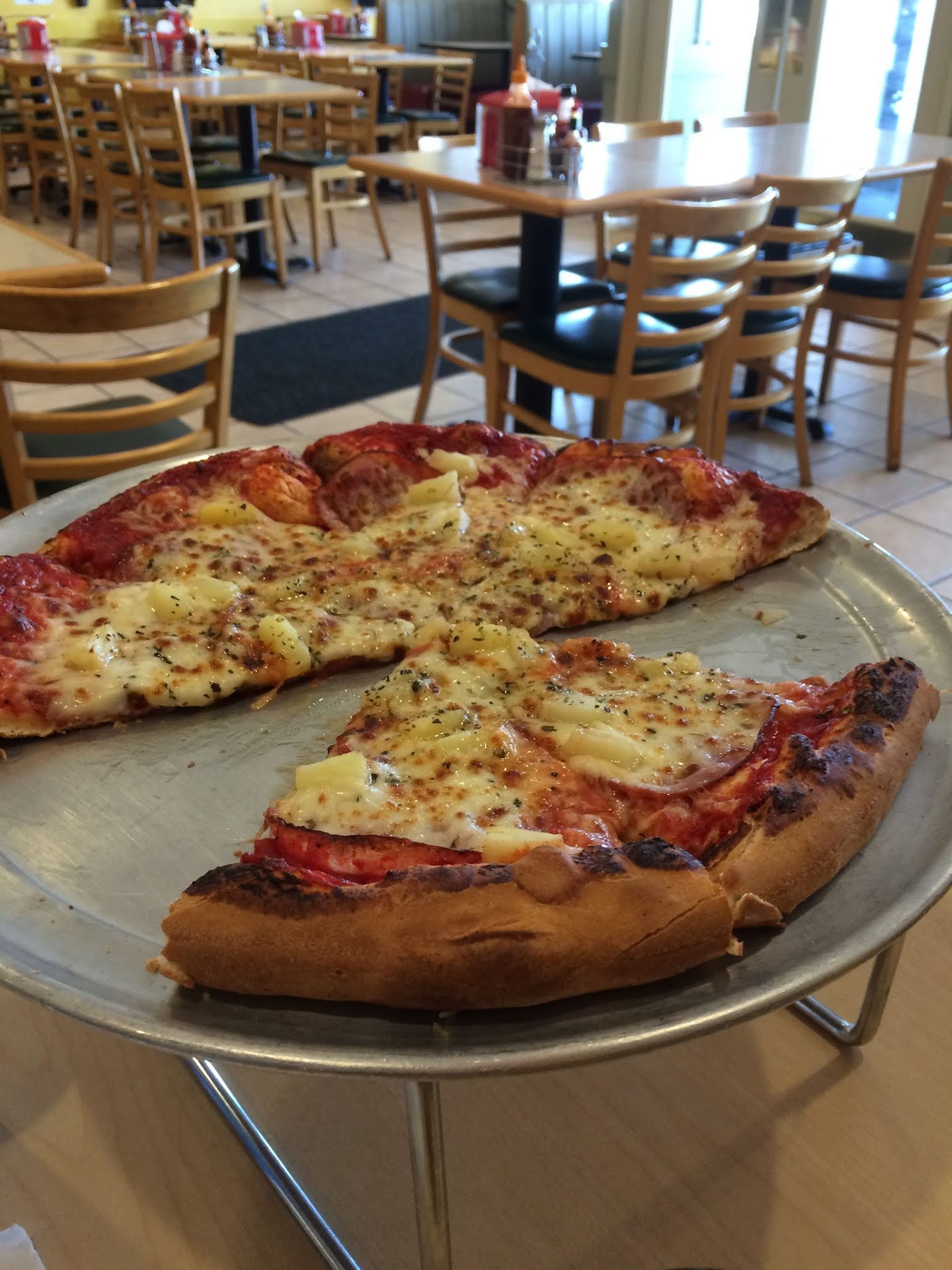Was back this afternoon after church services with my buddy Darryl. He had never eaten here and it was convenient to the location we were at. Darryl was impressed with the decor inside the restaurant and that he was able to watch TV at our table while we dined. The menu is very large, but we settled on an extra large supreme pizza with the traditional sauce. Remember that their normal pizza sauce is a sweet sauce and you need to be specific when you order. We thought we would have some pizza left over, but we were gluttons and ate it all. They have three different hot sauces and grated cheese on the table. Everything you need is there on the table. This is a plus in my book. They have a salad bar if you also desire sandwiches, etc. I need to get back there and try their sandwiches out. We both loved our pizza and service. Alex, our waitress was cheerful and attentive. Darryl particularly liked...