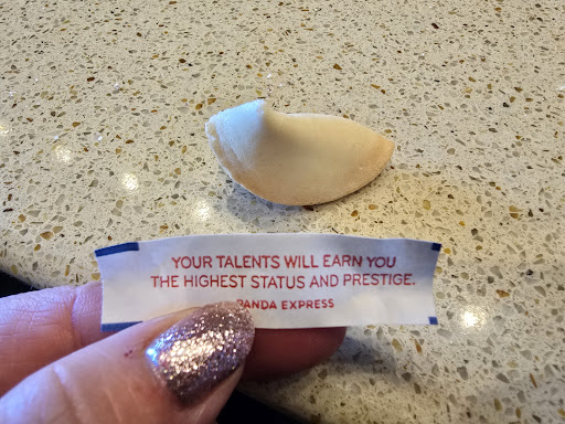 Read moreBelieve it or not this was actually my first time going to Panda express! My son invited me so I went along! I don't typically have Chinese food so it was a new experience for me. The smell was a little bit strong when walking in I'm guessing it's kind of like a vinegar smell or maybe soy sauce or something. We ordered the original spicy chicken with fried rice, crab rangoon, and the new Apple egg rolls. Not going to lie the apple dessert was my favorite! I did enjoy the rice and the chicken together, it was actually quite tasty. I just tried not to focus on the smell. Not that it's a bad smell it's just a little strong for me that's all, I'm not used to it. The customer service was good, everyone was polite, and the restaurant was clean. I thought that the circle booth in the center of the restaurant was a nice touch. I didn't get a picture of it because there was a family sitting there, but that was a pretty cool feature. I like that they give fortune cookies it's always fun to read those. There is a possibility that I may be back, I just need to warm up to it that's all. Thank you for the hot and ready fresh food and the buy one get one...