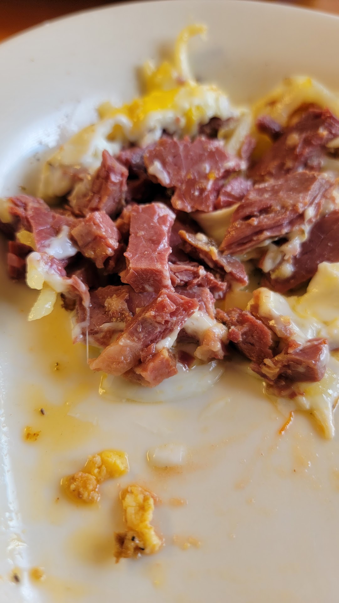 Before too long, we had our meals in front of us. My dad had his chef’s choice omelette and I had some cinnamon french toast with eggs and bacon. I was expecting some normal bread with ground up cinnamon on it but nope… I got legit cinnamon bread for my french toast. While this was unexpected, once I dug in, it wasn’t unwelcomed. It wasn’t a homerun taste combination with the syrup and butter toppings, but it did scratch my desire for french toast a bit. The eggs were just eggs and the bacon was good, but nothing to write home about. My dad said his omelette was good but wished he got his sausage gravy with his hashbrowns instead of having to wait to flag down the waitress to get it. She was hustling with the tables filling up and simply forgot to bring it out with the meal (my dad ordered it on the side). With the place filling up and people standing around waiting for tables to open up, we made our exit after about 45 minutes.