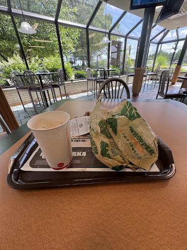 Read moreI've become a bit of a connoisseur of Burger Kings, since I've begun eliminating meat from my diet and the Impossible Whopper is so good..and I work crazy hours and often am too tired to cook. This particular BK, is near a few places I deliver to, for my one job. I don't have time to stop, I just need to grab a sandwich and get going to my next delivery. So it's a little frustrating that the line at this BK is soooooo long every single time. And it's that two lane system, which intimidates me. I always feel weird about moving forward when it's time to merge. So, it's annoying how you'll rarely get out of here quickly, because for some reason it's super crowded every time. But the employees are nice and have never screwed up my order which is more than I can say for more BKs. However, another issue I have is that they apparently don't allow anyone inside. Even though indoor dining is now legal in our area. Even if they don't want people eating in, they could at least allow people inside just to pick up mobile orders.. So delivery drivers like me could use the bathroom. :( But generally it's...