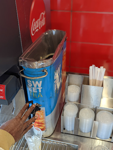 Now here's what made me make the decision to leave a review. Among the homeless people and the trash and the flies in the lobby, beside the dirty drink machine was the sweet tea dispenser. The sweet tea dispenser did not have an expiration time on it, and it didn't even have a lid. The tea inside was exposed to the open air. When I asked for the much safer tea in the drive-thru I received the standard "We just put that Tea out there." response from the same wonderful employee that was too lazy to take five steps to hand us our cups. When I informed her that the Tea they "Just put out there" was uncovered, Didn't have an expiration on it, and exposed to the open air, she visibly shrugged and acted like there was nothing she could do about it.