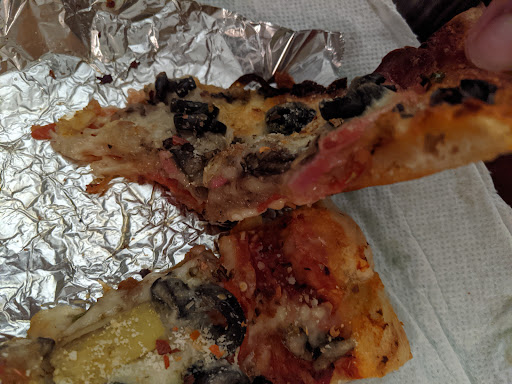 I have been to this location for years. It has been ok until recently. First two slices were burned. Nice waitress tried to fix it.