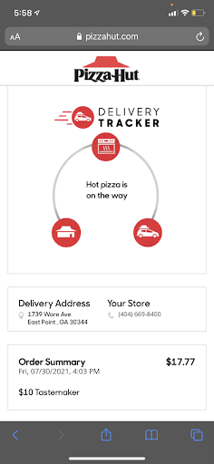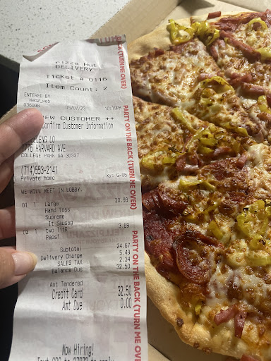 Read moreNEVER AGAIN!! DON'T STRESS YOURSELF OUT WITH THE INCOMPETENCE AND DISREGARD. Tried ordering online and the system kept kicking it back. So, I called the number for the store. Spoke to a guy named Ryan with an accent. He sounded completely disinterested in taking my order and that should have been it for me. BUT...... .I went with it because I know sometimes a person can be having a difficult day. Went to pick up my order 30 minuted later and I give the person my name and number and they said they did NOT have an order for me. When I said I called, they said their phones don't work and she didn't even know the number (signs of complete incompetence). No apology, no let's start making your order now, just.........we don't have an order for you. I leave the store because at that point I'm disgusted with how the store has now handled the situation. Call the phone number again and the same person answers and I say I just spoke with him and the store doesn't have my order, and he disconnects the call before I even finish speaking. Called another store in Union City because I wanted pizza! Apparently Pizza Hut forwards their calls to a customer service line, which is bs. I speak with (Vic) and he has my order in the system and tells me to hold on. He returned to the line three times apologizing and telling me to please hold on. Was on and off hold for almost 10 minutes. Hung up. Won't do it again....