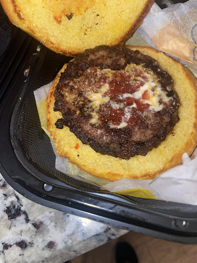After touching/rearranging the counter and not sanitizing her hands the young lady opens my order to show me my food but her thumbs were on my fries. (didn’t eat them) and while checking out she’s on the phone talking: “i’m talking to a customer right now but yeah..” and continued conversation.