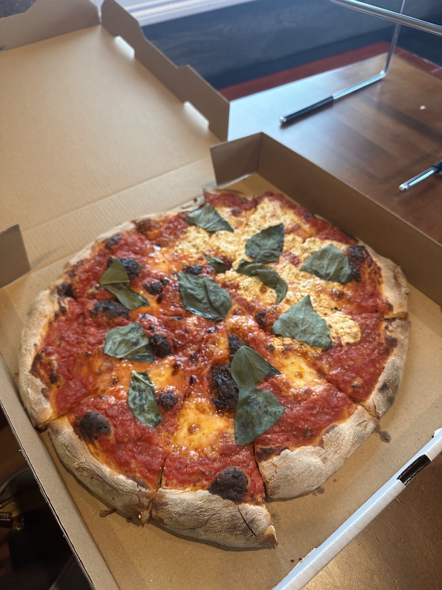 I did a takeout order for a Forager (which is a wild mushroom pizza), had it done calzone style and added ricotta and truffle oil.