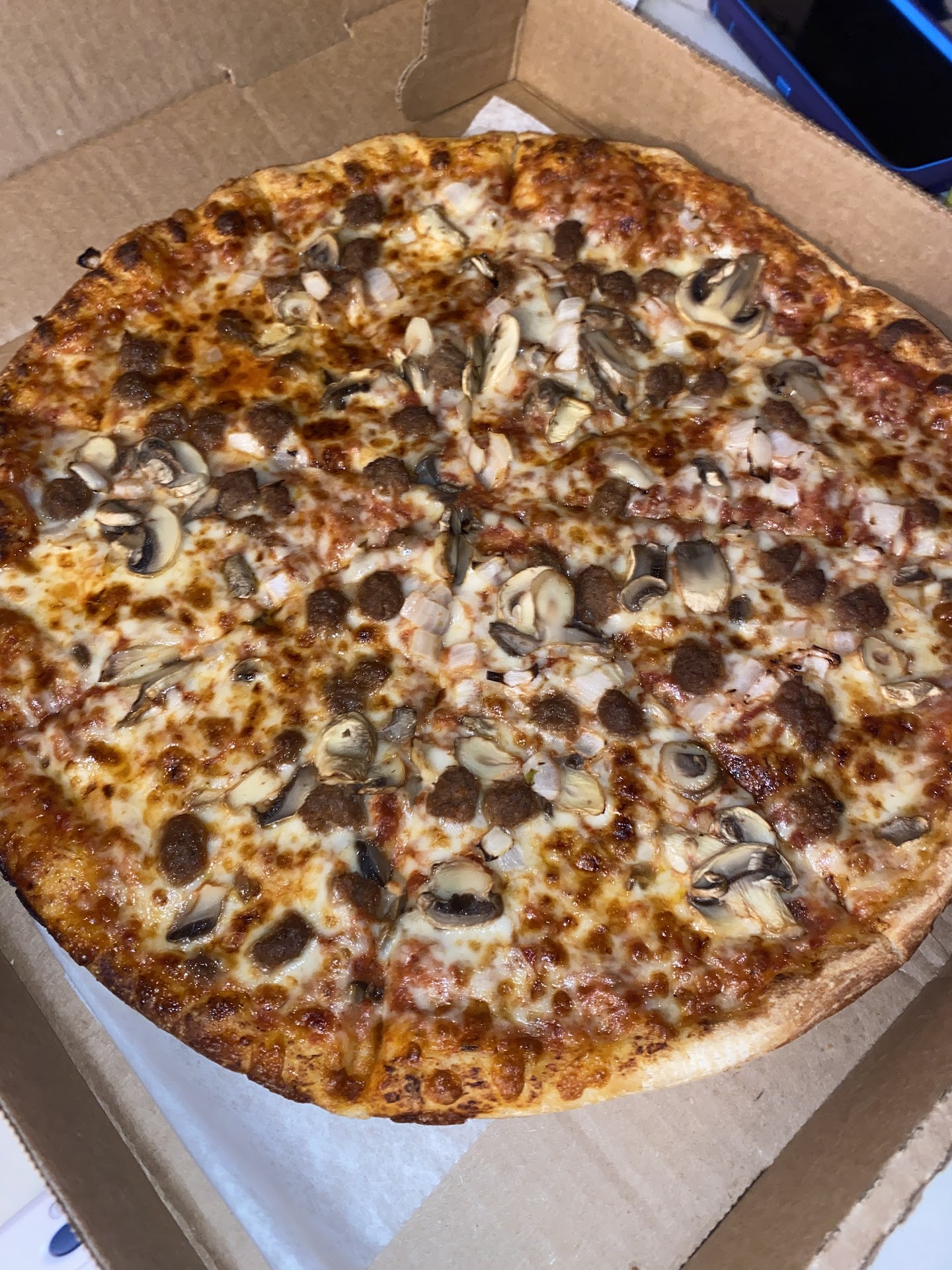 I picked up the pizza and I am angrily not disappointed! Who goes around offering high quality pizza at a ridiculously low price? I ordered two of these large pizzas and could hardly put a dent in one, never mind my petite girlfriend's look of shock as she saw how massively well put together these pizzas were.