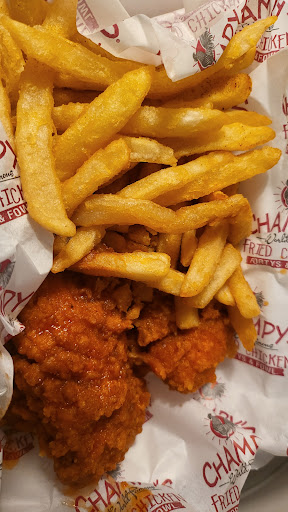 Read moreChampy’s Chicken saved a 💩show of a day. A long travel day with a few hiccups landed us about 2 miles down the road at a campground. Hadn’t eaten since 10am, hot and miserable, this place looked like a good place for an adult beverage…and by good place I mean the first place we saw that had a bar. Parking lot was packed and drive thru wrapped around the building but figured we could find a seat at the bar and at least drink while we waited. Walked in and were seated at a table within 3 mins! Server had drinks on the table within 5 mins. and a fried green tomato appetizer 5 mins later. While we were devouring the delicious and true to southern cooking tomatoes, our meals came out piping hot! The drinks: such a good pour we didn’t even need another one. The fried chicken: How is KFC or Popeyes still even in business kind of good! Maybe even better than Mamaw’s -God rest her soul- even though she would slap my jaws for even thinking they compared. The potato salad - recommended by the server: the best potato salad I’ve ever had and I’ve been to 789,249 church dinners on the grounds. A perfect mix of Mayo and mustard with a heavy dust of paprika on top. The coleslaw: fresh, crunchy cabbage, tangy and sweet dressing. The baked beans: Extra! They were the kind you want to eat around a campfire in Montana while on an over nighter pushing the cattle back to the ranch. Baked beans, kidney beans which gave it a meaty taste, bell peppers and hunks of fatty cooked bacon. The Green Beans - flat Italian style with a bacon grease floater, perfectly salty, and cooked just beyond crunchy and before mushy. The prices: HOW can a meal like that be served for $12?! Best bargain I’ve found that wasn’t on clearance at Nordstrom’s Rack. From the hostess, to the bartender, to the server, back to the kitchen where somebody’s Mamaw taught them the righteous path to a deep fryer…EXCELLENCE! Our tummies were so fully and tastebuds so happy that we forgot all about the previous 8 hours of...