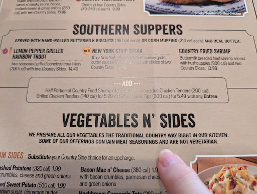 Ā Ā Ā Read moreWell, since you askedā¦. Ever since Covid, what was once a first rate #1 company has slipped consistently. Not just this visit and location but 9 out of 10 visits at multiple locations. Poor food quality, or cold food, or out of menu items. Chicken pot pie on back to back visits at two separate locations. Sorry we are out. Maybe it should be taken off the menu then? You all once had the best stew in the south. We came in just for that, no more sorry, we donāt carry it anymore. We asked to sit near a window to watch our puppies we left in the car on this visit and we were denied that view. The front dining room was packed full, every table in fact, we were assigned the last seat in that section. The back dining room where we asked to be seated had only 5 tables being used. So I got up every 15 mins and walked to an empty dining area to check on my pups looking at the window at me. Unbelievable! Hate to complain but I noticed your stock dropped $100 per share over the last several months. Iāve been in retail for 47 years and what I see with this company starts right at the top. You all need some new leadership or in my opinion, we will be reading about stores closing and maybe even out of business. No need for this at all because you all have a great model and fantastic menu. Your quality and service is not what it once was. It once was superb every visit, every location, period. No more. Today we drove by Cracker Barrel and went next door to a different place. What a shame. Just so Iām clear, this is not just one visit or one store, this is multiple visits and multiple stores. Itās an operational issue. Not the same standard you once had. Lastly, I overlooked a lot during Covid due to the help and supply chain issues, but you have not rebounded after Covid. Maybe this will be a wake up call. A once extremely loyal customer.