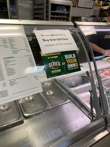 Read moreSandwich artist receive 5 stars, management receives zero. This location does not accept BOGO coupons, even though the company sends them out for use at subway. Then management proceeds to place a multiple signs around the restaurant claiming that due to the ECONOMY they cannot honor bogo coupons. Imaged is the sign that is spammed around the restaurant, they have one official sign on a subway backing that blames the economy for their lack of accepting coupons. You know, because a multi million dollar company with thousands of rich franchise owners canât fathom giving away $6 of product. The owner of this establishment is GREEDY and does not care about his community like subway use to have a standard of doing! Iâve been wanting to speak with the manager about this, however he or she seems to be a very hard person to reach, never answering the phone at the establishment, and never being present. Iâve literally never even seen a manager in the establishment out of all the times I have...