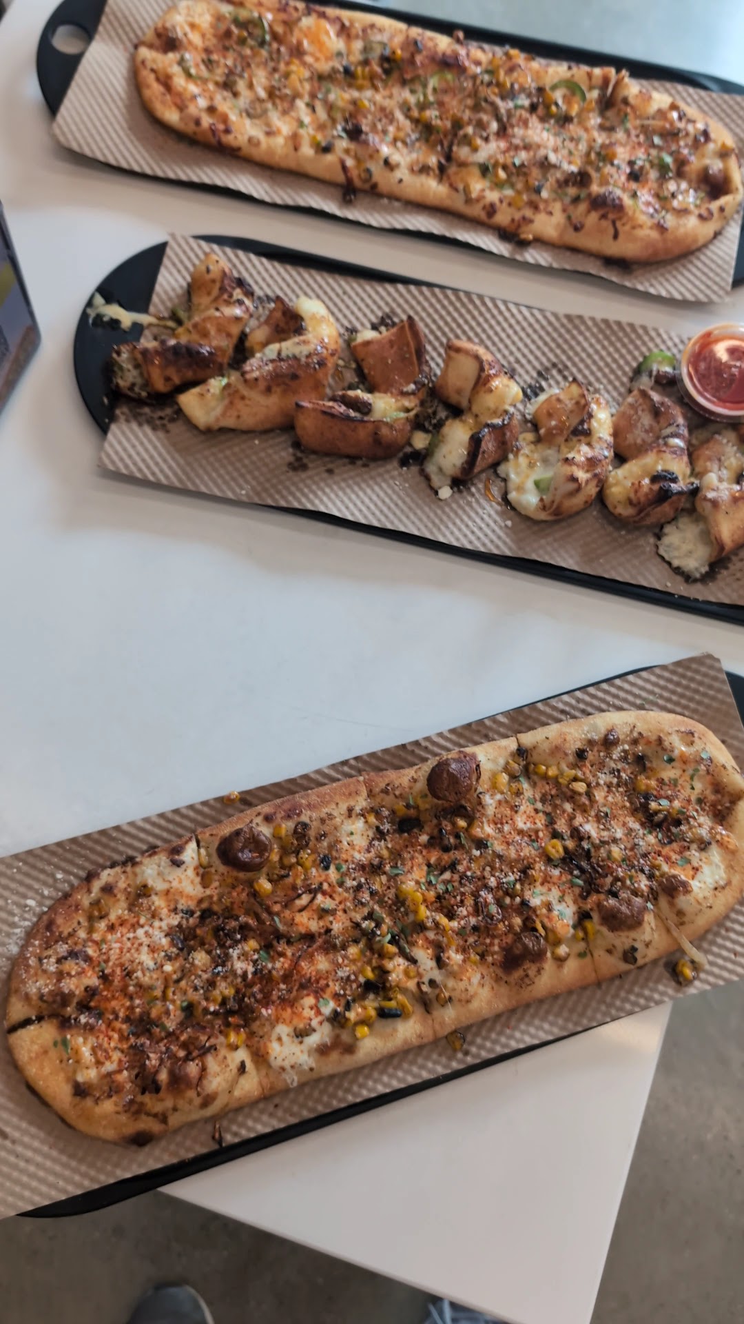 Accompanying my meal was a refreshing hibiscus tea, its tart floral notes providing a perfect counterbalance to the rich flavors of the pizza and treats. The service, led by the warm and welcoming Carisa and Tia, was exceptional, making the dining experience even more enjoyable.
