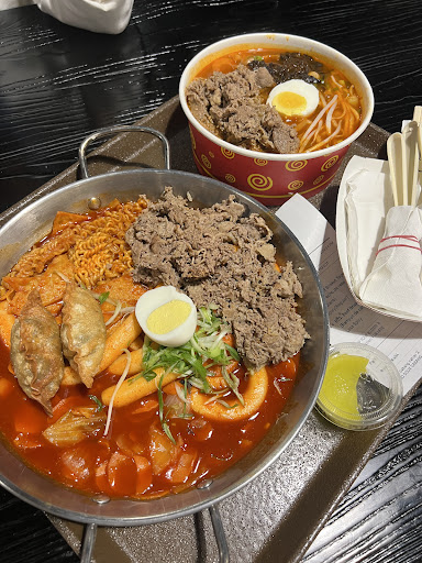 Read moreThis store is inside the H Mart market, which has a cool vibe with lots of different food stalls to choose from. I was looking forward to trying this place, but the food just didn’t stand out. We ordered the beef brisket ramyun and the beef brisket topokki. The ramyun tasted like instant noodles you’d make at home, and the topokki wasn’t much better either.