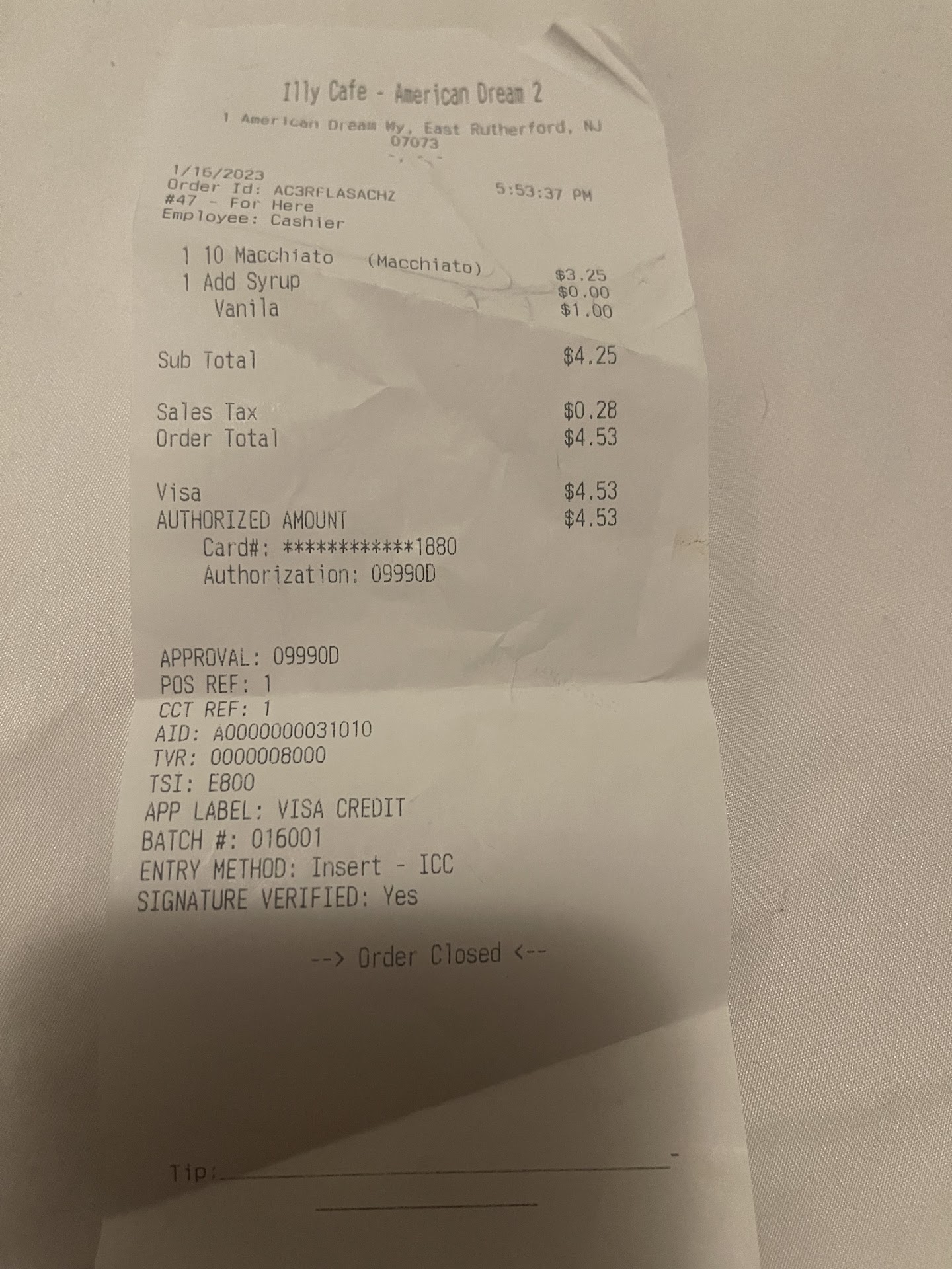 We were hungry when we arrived at the American Dream Mall so we promptly made our way up the Coca Cola Eats food court on the 3rd floor in Court C of the vast Mall. After our eating our food from the King Kong Express & Popeyes stalls, I went to the Illy Cafe stall to buy my wife a large cafe latte with just one shot of coffee, a large English breakfast tea and a slice of their delicious tiramasu cake for me, which came to very reasonable total of $20. My wife had said she didn't want any desert but she ended up eating the tiramasu because it was so good and I had to go back and get another slice just for me, which cost another $9! The really friendly & helpful server laughed when I told her that the extra slice was just for me as my wife had eaten the first one all by herself𤣠We enjoyed the drinks & tiramasu so much we returned to the cafe to have the same drinks and another slice of cake just before we caught our bus back to NYC and we were served by a different but equally helpful & friendly server. The food court and the vast mall didn't have many visitors when we went on a Wednesday, so there was plenty of seating at and...