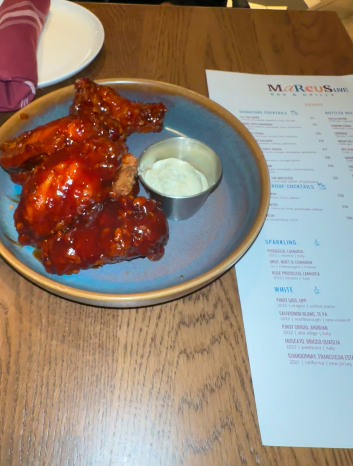 Read moreStopped by for a light lunch on Thur around 12:30 pm. American Dream website is showing free validated parking when dining during weekdays 12-2 pm at listed restaurants, but when we asked, the server had to get a manager to validate it. David, the manager was being very nice about it. The restaurantâs website shows they have option for an Express Lunch menu, which has limited selection of items but of a better value than the all day menu. The maitreâd didnât include the lunch menu until we requested it. Food came quick and everything was delicious. The corn bread came with sprinkles of wht looked like sea salt, and the honeyed butter & berries jam that accompanied the corn bread were soooo delish! Brussel sprouts were roasted to a crispy perfection, and drizzle of hot honey and pickled onions on it were just awesome. Truffle fries was fried perfectly crisp and hot, always a comfort munch. We chose brown sugar sauce for the wings, again the wings were fried to a perfect crisp. Some people might prefer their wings juicier like how they do in many other wing places, but i prefer my wings crispy, so this was very much to my liking. We ended up dipping the fries in the wing sauce coz itâs that good! Sweet with a mild tang and kick.. just yummy! The house made blue cheese dip was so thick and decadent, i could eat it with a spoon. Overall for the lunch menu, iâd say itâs a very good value. Might come back to try their entrees next time. Ambiance is fine, brightly lit and server is attentive. He asked if weâd like some water in addition to our drink order and left an entire bottle of ice cold water for our table, which I really appreciate. Wobbly table is a thing though, i read about it on the other reviews and our table was wobbly too, although the server said the previous table we were seated at had an even wobblier table, and ours wasnt as bad. I find it hillarious that they knew abt the wobbly tables and itâs still not fixed? Canât even squeeze something underneath the table feet to stop the wobble? đ Itâs certainly not a deal breaker issue. All Nighter mocktail was refreshing. Good...