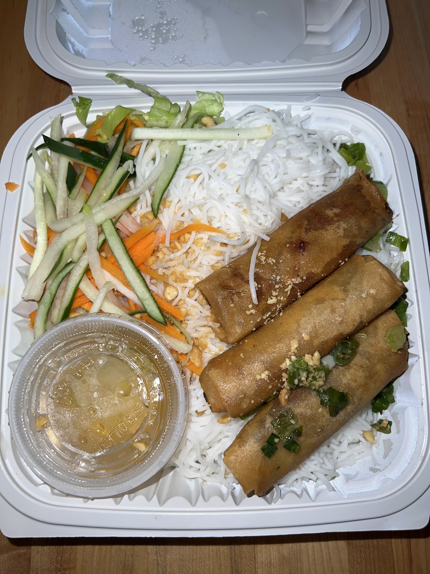 To start, the spring rolls I ordered lacked the expected freshness and were rather dry. The absence of moisture made them unappetizing and significantly compromised the flavor. It is crucial for a dish like spring rolls to possess a light and succulent consistency, which was unfortunately missing here.