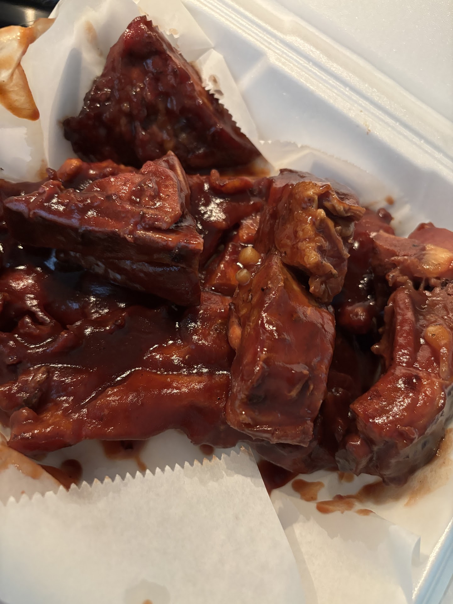 Ā Ā Ā Read moreI called on 7/4/2020 at 11:00am. I ordered 15 well smoked wings, 3 rib tip plates and a snoot plate. I was told by the owner that my order would be ready at 5:00pm because of the time it took to smoke the wings. I agreed that the timeframe was fine. I arrived at 5:00pm only to be told that they mistakenly prepared me fried wings. No one bothered to verify the order. Which means they could have called me to pick up the remaining portion of my order sooner. Basically I was told that they couldnāt do anything about it; they never offered me anything for the inconvenience. Needless to say they only had my order down for 2 rib tip plates. I ordered 2 rib tip plates with regular sauce, 1 rib tip and 1 snoot with sweet n spicy sauce. The staff took at least 7 minutes to get that correct. A young lady from drive through had to come to the front counter to get the order correct.The young lady at the front counter was in her feelings because I stated that this isnāt rocket science. Which is the truth, itās not. My family couldāve eaten earlier had they reviewed the order and prepared it correctly. Normally I donāt fuss too much but this is the 3rd time for Iāve had an issue with this place when it came to smoked wings. When ordered, I even asked that they be cooked a little longer because I ordered $50 worth before and they werenāt...