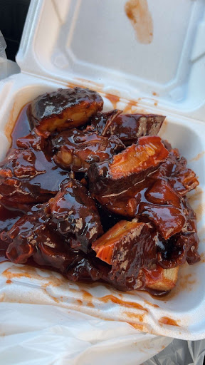 Food: Lord have mercy, we got two rib tip and snoot combo plates, a small potato salad, and an order of tater tots with cheese, and when I tell you, the food was piping hot when it came as soon as we lifted the lid, the smoke that emitted from our food was unreal. It was so good. The first bite was the snoot. We didn’t eat it until we got home, which was about 45 minutes later and it was still hot and the tips were so tender you can bite right through the gristle which is my favorite part. The sauce was like your traditional old school barbecue sauce not tomato based but you know somebody has some blessed hands back there making up the sauce absolutely delicious and finger licking good…. I’m telling you guys if you want some barbecue, they are killing the competition very tasty and very affordable. Don’t sleep on Cals bbq.