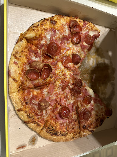 Read moreTo say that I'm disappointed would imply that I had certain expectations to begin with. Look, I get it. It's not great pizza, but I sat waiting so long for my order that the young man behind the counter forgot who I was. When I checked on my order for the second time, he said, "Can I help you? You guys want to order something?" To which I replied, "Uh, yeah, been waiting for our pizzas, how we doing with that?" At this point, we had been sitting there for about 55 minutes. He was clearly embarrassed and talked to the manager in the back about comping me something while he held some kind of coupon book in his hand. She shook her head, "no", and he came back and sheepishly said, "Next time you come in, you get a free pizza." So I'm imagining walking in again at some point with no coupon or other proof and saying, "Yeah, I'm here for the free pizza you guys said I'm entitled to from the last time I was here." I'm guaranteed not to get that pizza, but not because I don't have a coupon, but because I'm not ordering from Hungry...