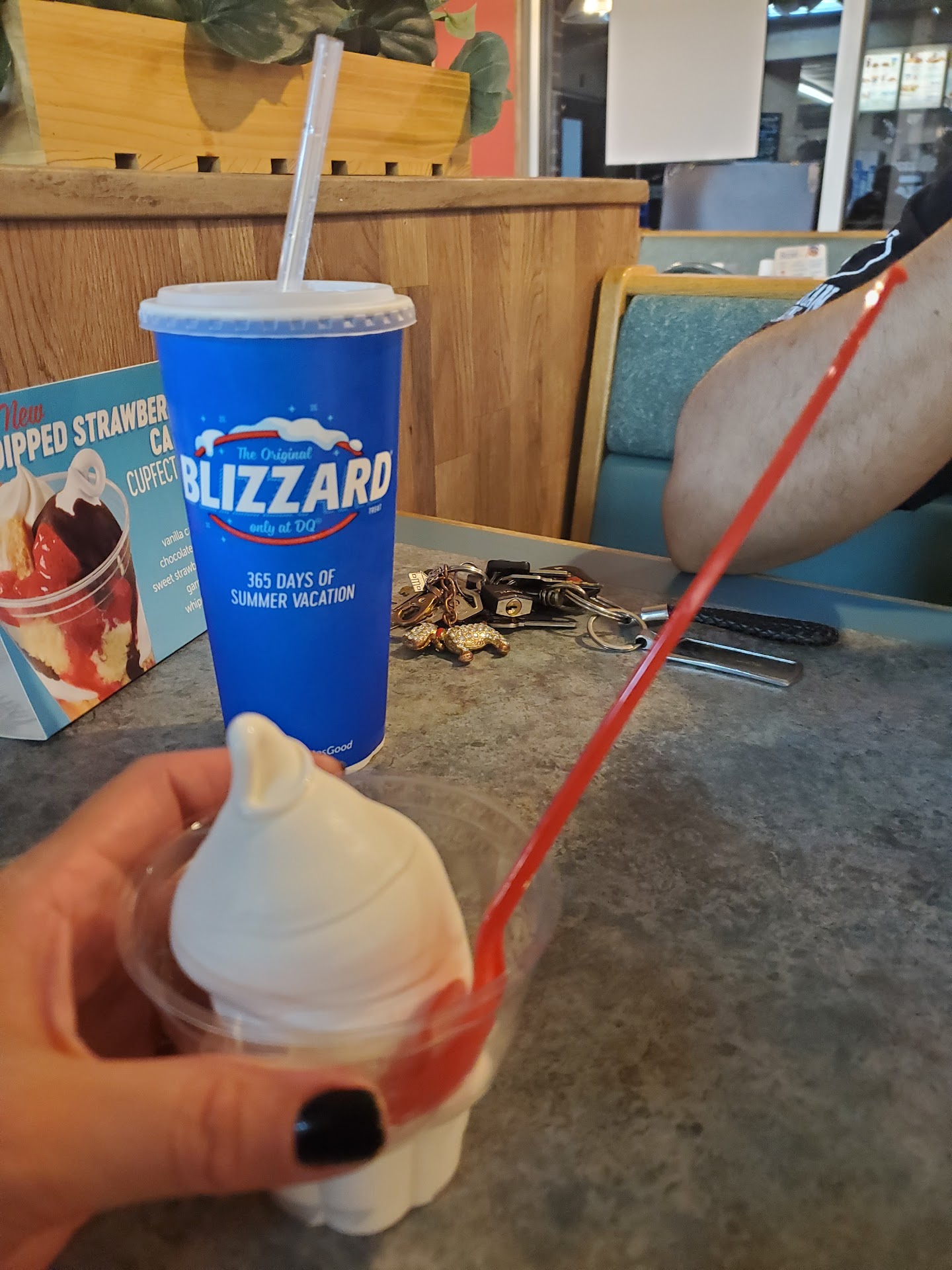 Read moreThis is my local DQ so it's very convenient for the drive but I swear anytime my husband or myself get our usual (mostly for me and my daughter) I normally get a sundae of some sort or a banana split, and for the longest time any time I'd get a banana split even a blizzard my banana tasted horrifically green and I mean very green in taste so after so many failed attempts I went back to just the sundaes. Sometimes they're ok and I mean a very few visits but most of the time there's barely any topping on it at all normally not enough to go with ice cream ratio. The DQ in Ebensburg I've never had a problem with so far they actually hand you what...