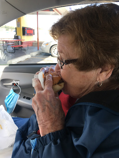 Small town drive-in restaurant with smiling faces and warm hearts. My Mom and I take day trips from West Allis to smaller towns in southeastern Wisconsin searching for a good lunch and conversation. Who doesn't like the nostalgic? the retro? the vintage drive-in restaurant with classic 1950's menu of burgers, shaved beef smothered in cheese and fried onions, hotdogs, fries and custard shakes. Gus's Drive-In is this place and it is timeless. Today, Mom was in a mood for a 1/4 pound burger with a mountain of fried onions, sliced dill pickles, ketchup with a side order of extra crispy fries. Gus did not disappoint. We went inside to pick up our preorder and we were met at the counter with a smiling face behind her mask and a chipper, upbeat and super nice greeting. As soon as I said my name and my preorder, the order was being handed from the kitchen to the counter in a paper bag, folded over and stapled. It does not get any better than that. And, did I say Gus has really nice counter staff? Yup. I imagine just like it was 50 years ago. Mom and I started eating in the car next to the 30 foot enormous likeness of, I guess, Gus. Mom took a bite of her juicy hamburger with ketchup, sliced dill pickles and a double order of fried onions. I thought that I saw a tear coming down the left side of her cheek. She said that the hamburger was hot, amazingly good, juicing with farm freshness (Mom should know about farm freshness because she grew up on the farm). The only thing that could of made Mom's hamburger better she said is if they toasted the bun. But, she said that she enjoyed the softness of the bun today with the juices of the perfectly cooked 1/4 pound hamburger, fried onions and sliced dill pickles. Mom is a push over for fried onions and she said these onions were grilled perfectly. Sneak a few extra crispy fries away from me, dip them into the ketchup well and Mom got herself a winner, winner hamburger dinner. Mom rated the quality of the food, atmosphere and conversation at 5 stars. I agree, this was a 5...
