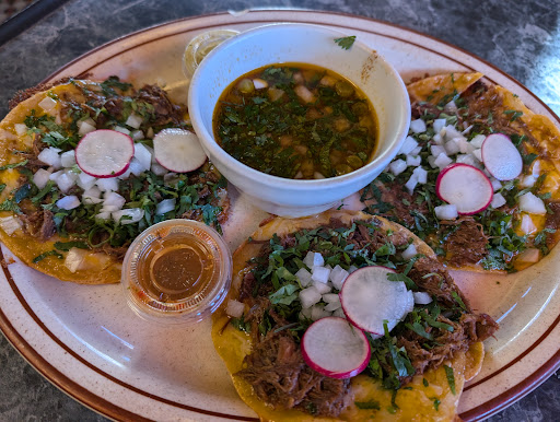 Tacos were excellent, I thought they were a bit small at first but flavors were great and I’m pleasantly full still. Birria was greasy in the best way, consommé was top notch (I finished what was leftover and loved the rice on the bottom), Al pastor was delicious as well- would’ve liked more of the grilled pineapple, the bites with it were the best. Their salsa verde was probably some of the tastiest I’ve had- it’s not usually my favorite but I loved it! Their red sauce was also good and had a nice kick to it- would’ve enjoyed hot sauces on the table but I was so happy with the salsa verde I didn’t even think to ask.